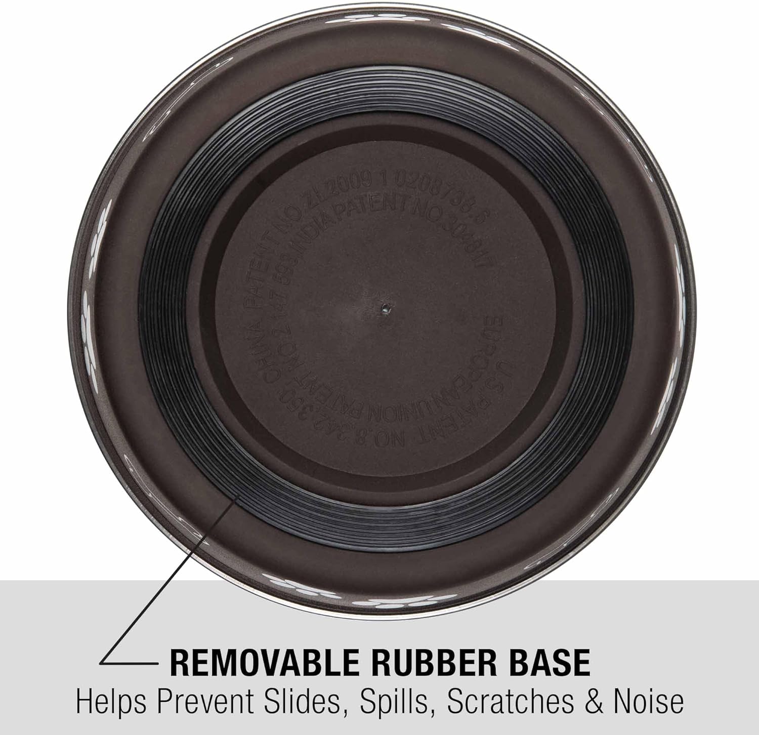 - Removable rubber base prevents skids, spill and noise
