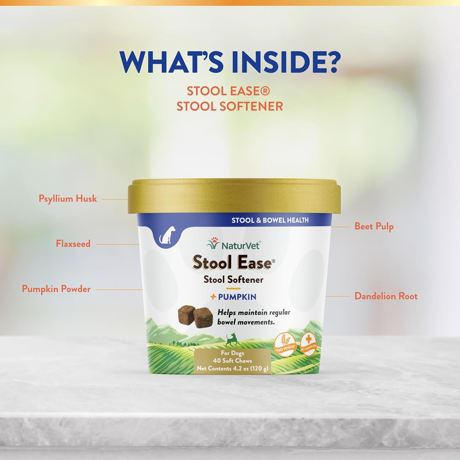 NaturVet – Stool Ease for Dogs – 40 Soft Chews – Helps Maintain Regular Bowel Movements – Enhanced with Sugar Beet Pulp, Flaxseed & Psyllium Husk – 40 Day Supply