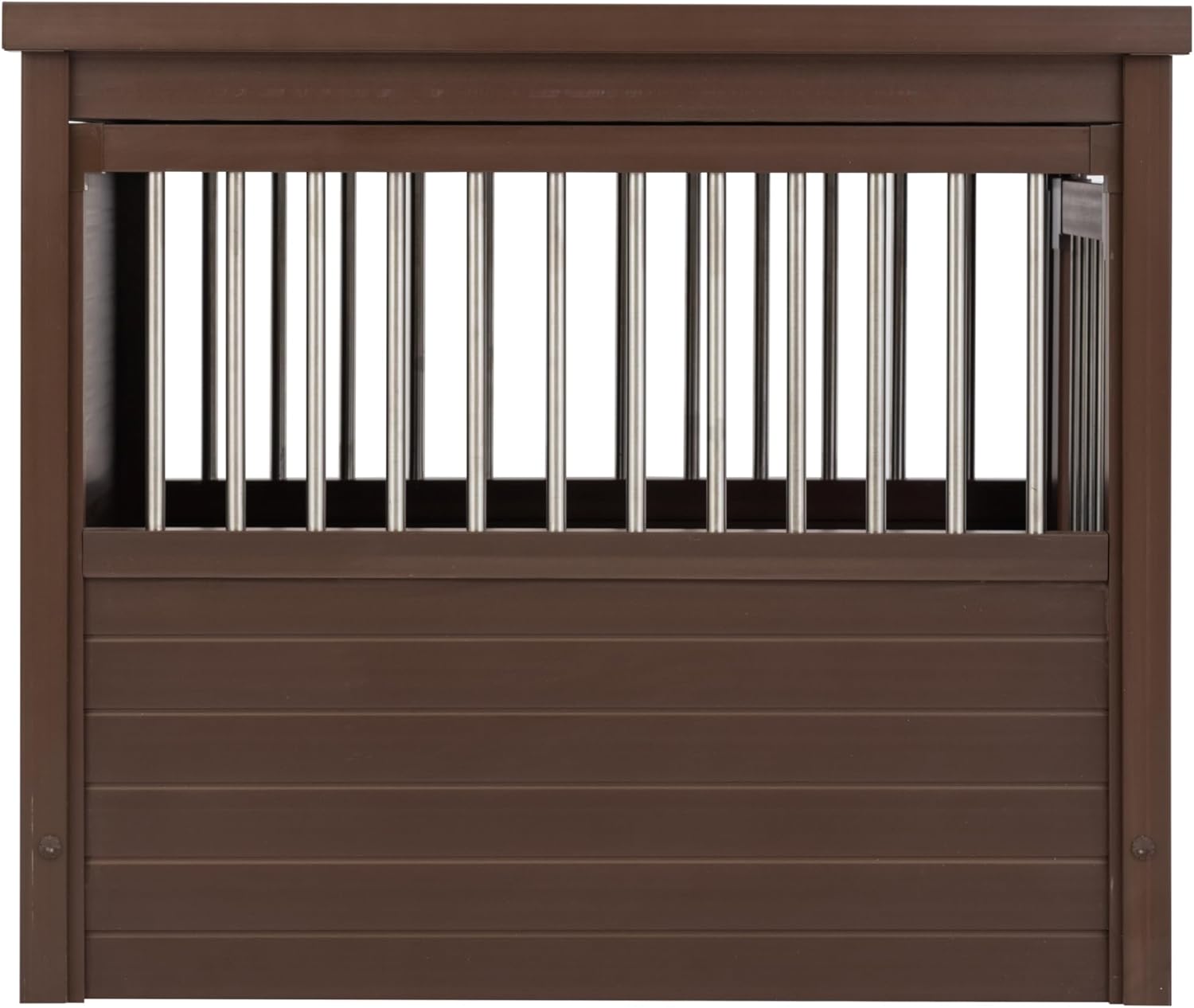 New Age Pet ECOFLEX Dog Crate End Table - Furniture-Style Pet Crate for Crate Trained Dogs - Stainless Steel Tubing & a Latched Closure - 10 Year Manufacturer's Warranty, Medium, Brown
