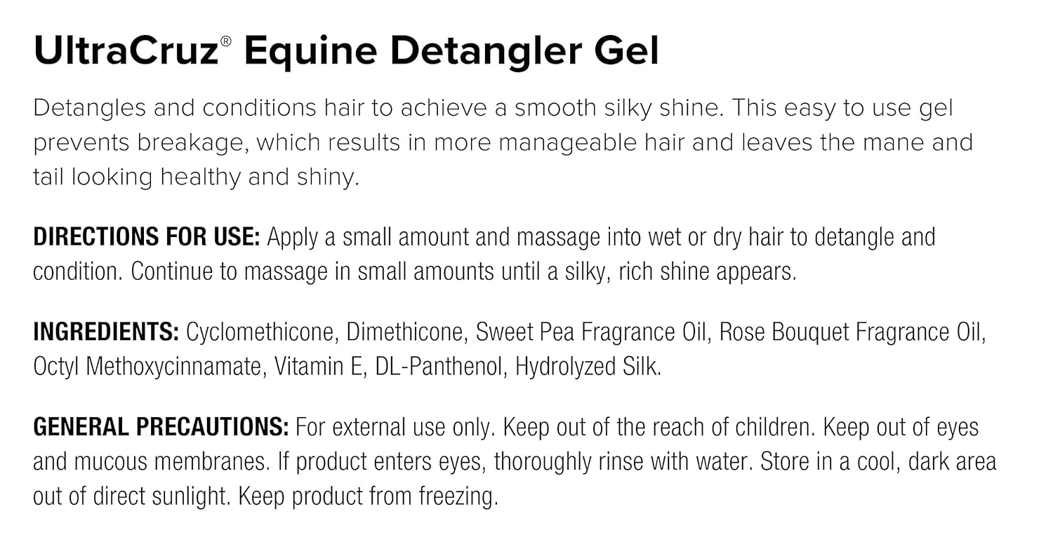 - Detangles, fortifies and conditions mane and tail