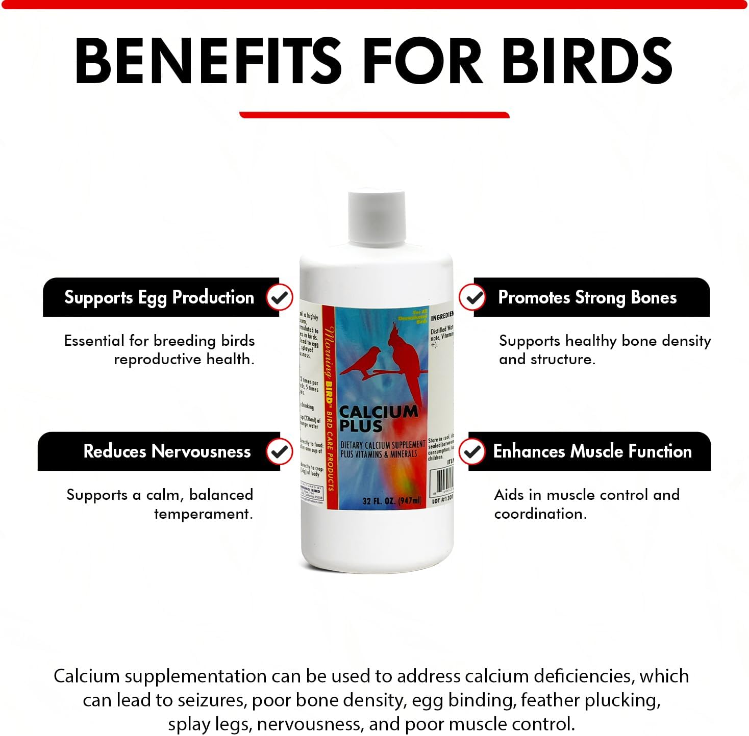 Morning Bird Calcium Plus Liquid Supplement for Birds - Liquid Calcium Formula with Magnesium and Vitamin D3 Calcium Supplement for All Birds – 32 Fl Oz