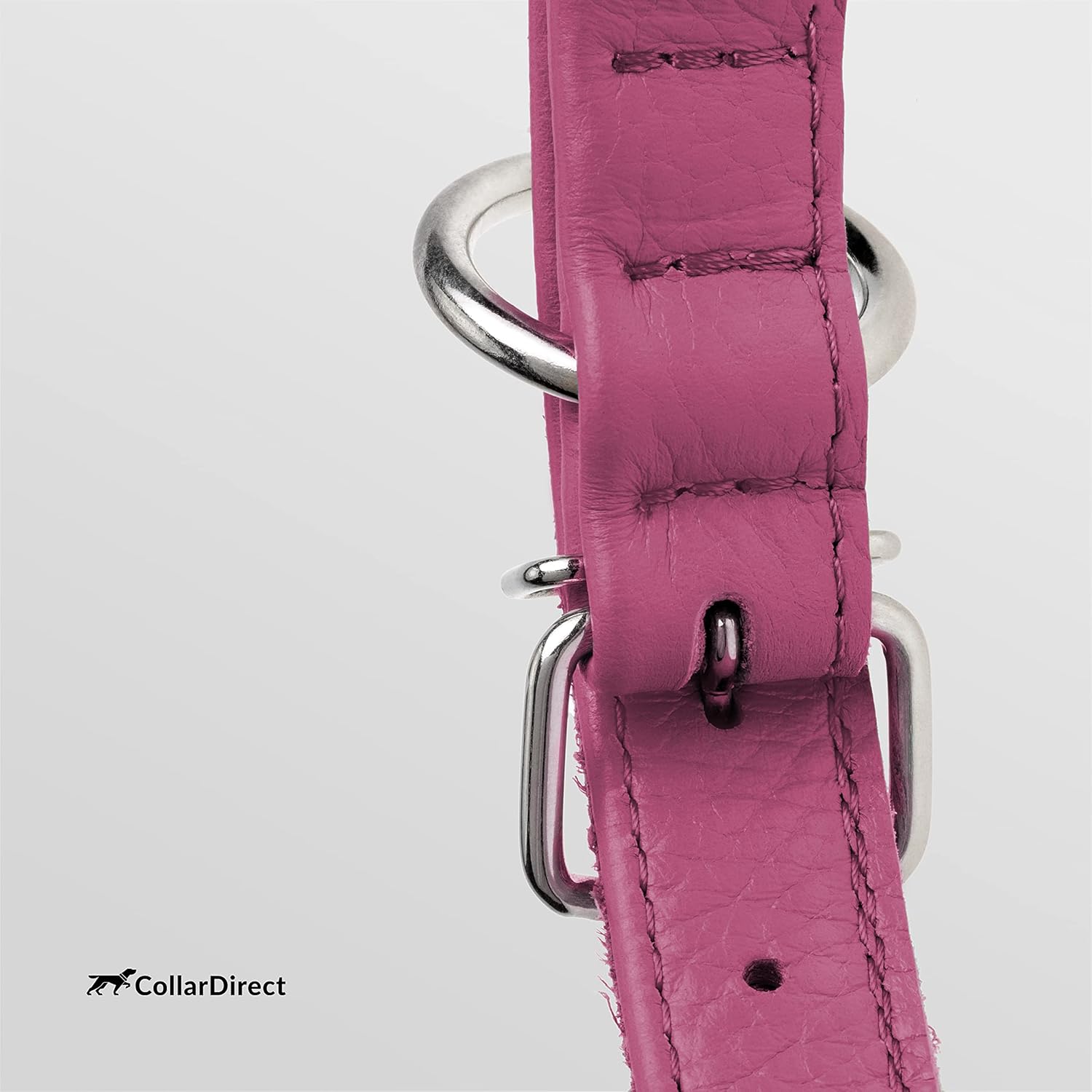 CollarDirect Rolled Leather Dog Collar, Soft Padded Round Puppy Collar, Handmade Genuine Leather Collar Dog Small Large Cat Collars 13 Colors (15-19 Inch, Pink Textured)