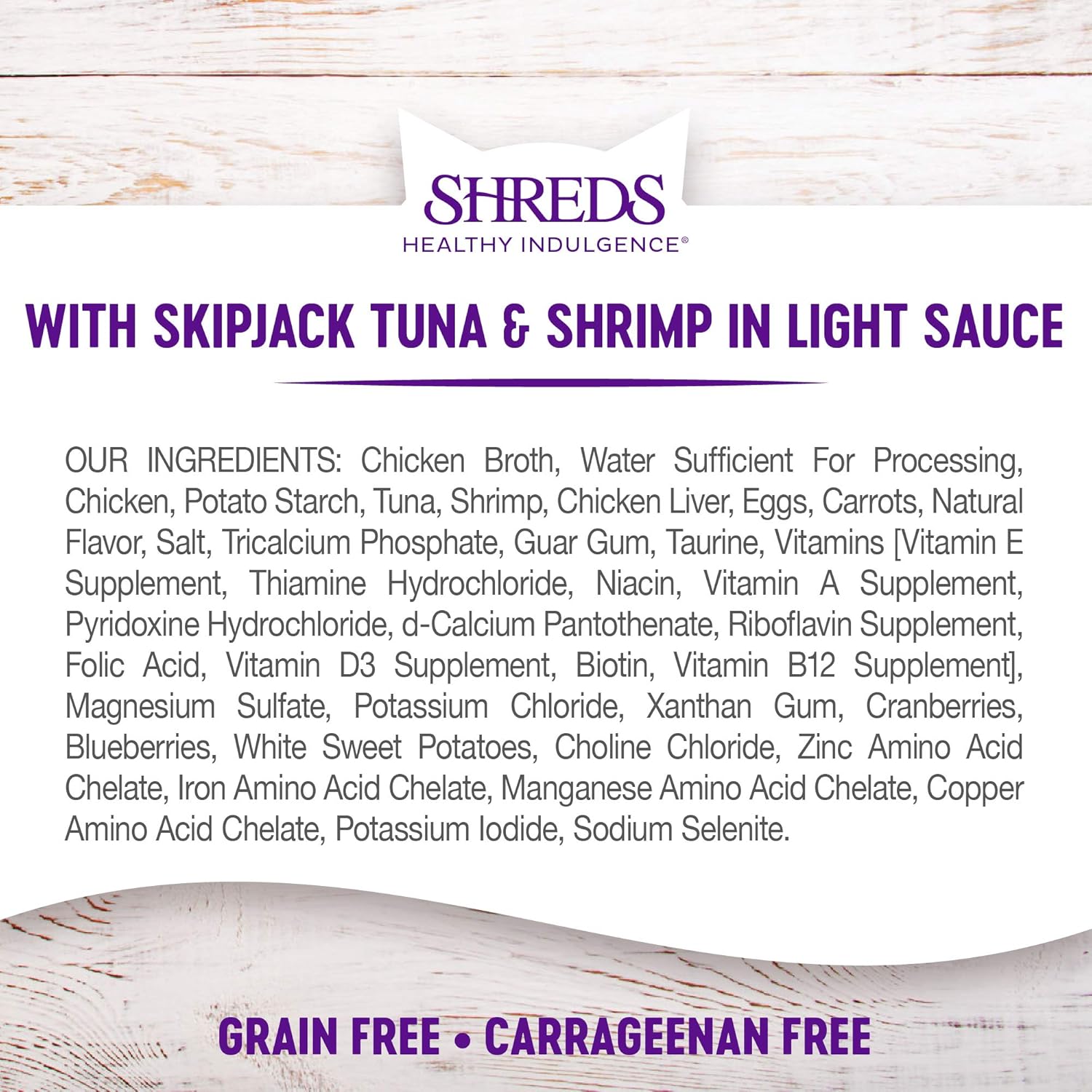 Wellness Healthly Indulgence Shreds Adult Wet Cat Food, Natural, Protein-Rich, Grain Free, 3 Ounce Pouch, 24 Pack, (Tuna & Shrimp)