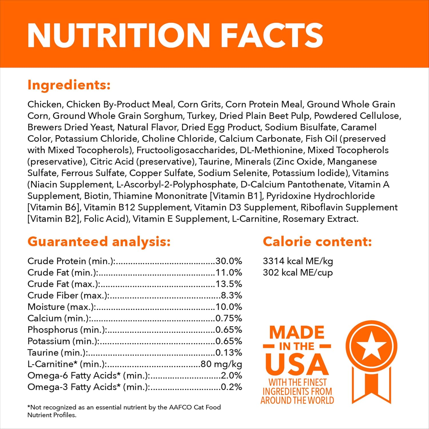 • Complete and Balanced for Adult Cats: 100% nutrition, 0% fillers, this dry cat food supports whole-body health with essential nutrients and is enriched with antioxidants for a strong immune system