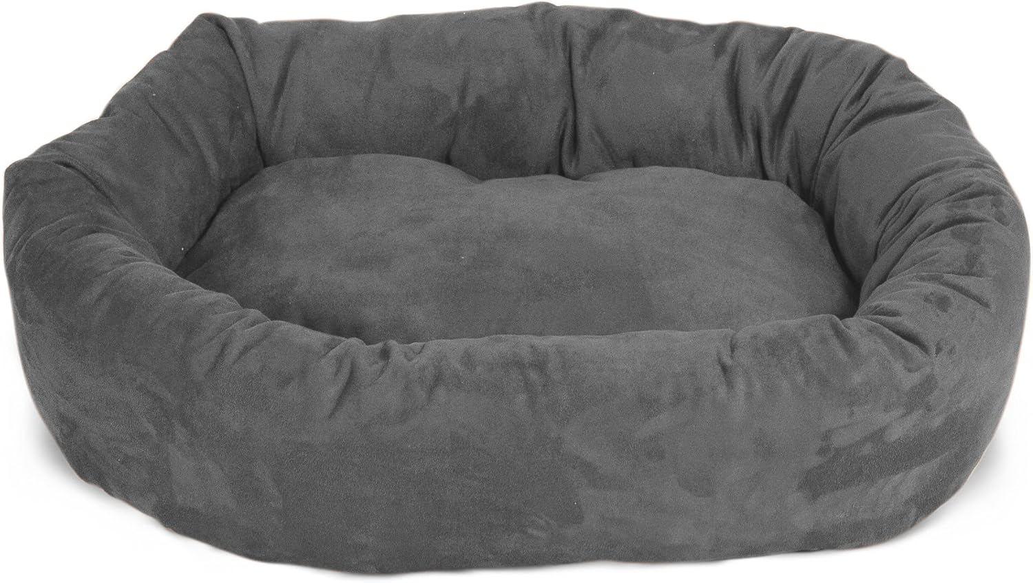 Majestic Pet 24 Inch Suede Calming Dog Bed Washable 24x19x7 (Inch) – Cozy Soft Round Donut Dog Bed with Spine Support for Dogs to Rest Their Head - Pet Bed Small – Gray