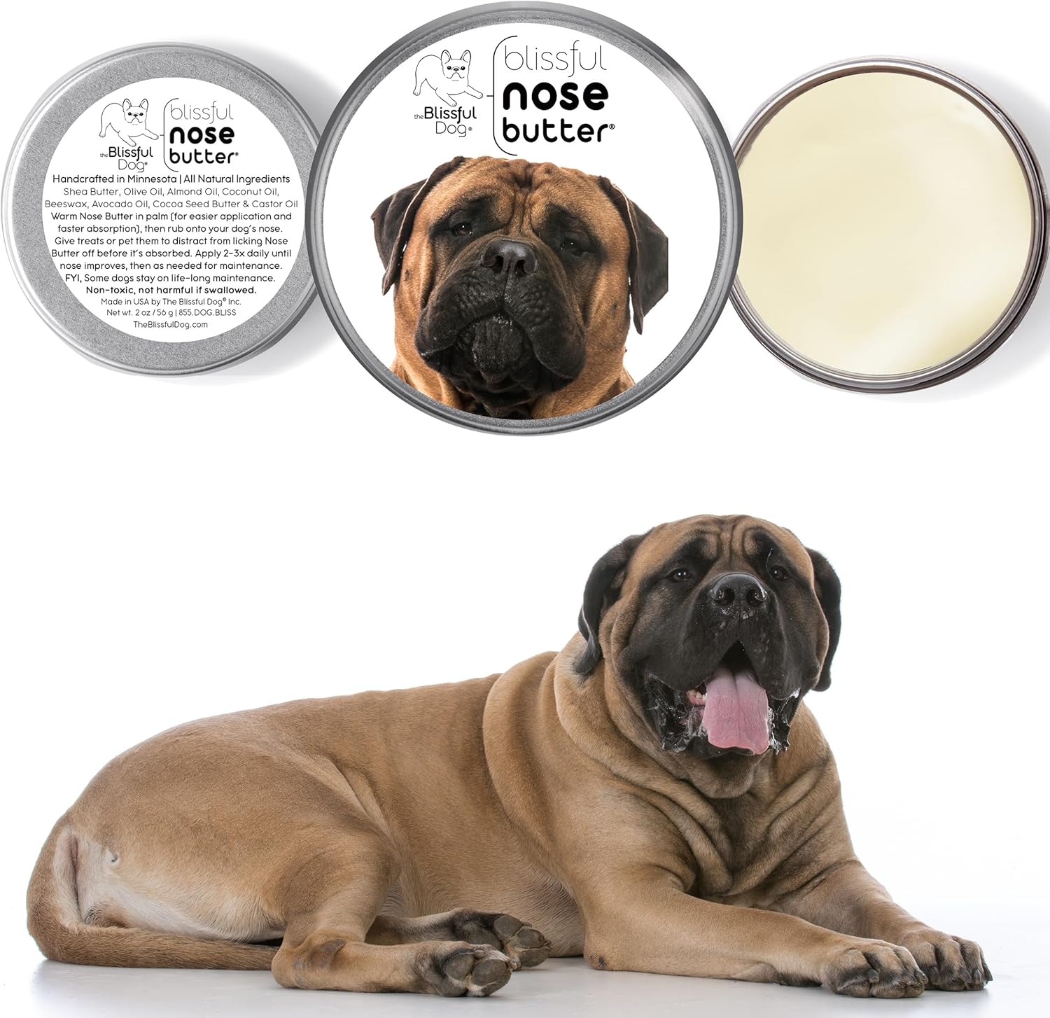 The Blissful Dog Bullmastiff Nose Butter for Dry, Cracked Skin, Lick-Safe Dog Nose Balm with Moisturizing Shea Butter, Almond, Olive, and Essential Oils, Pet Supplies, Uncented, 4 oz.