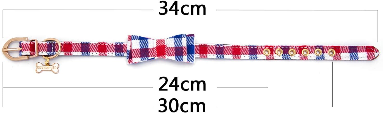 Puppy Collars for Small Dogs - StrawberryEC Adjustable Puppy Id Buckle Collar Leather. Cute Plaid Bowtie Blue Dog Collar (Bow-Blue-Grid)