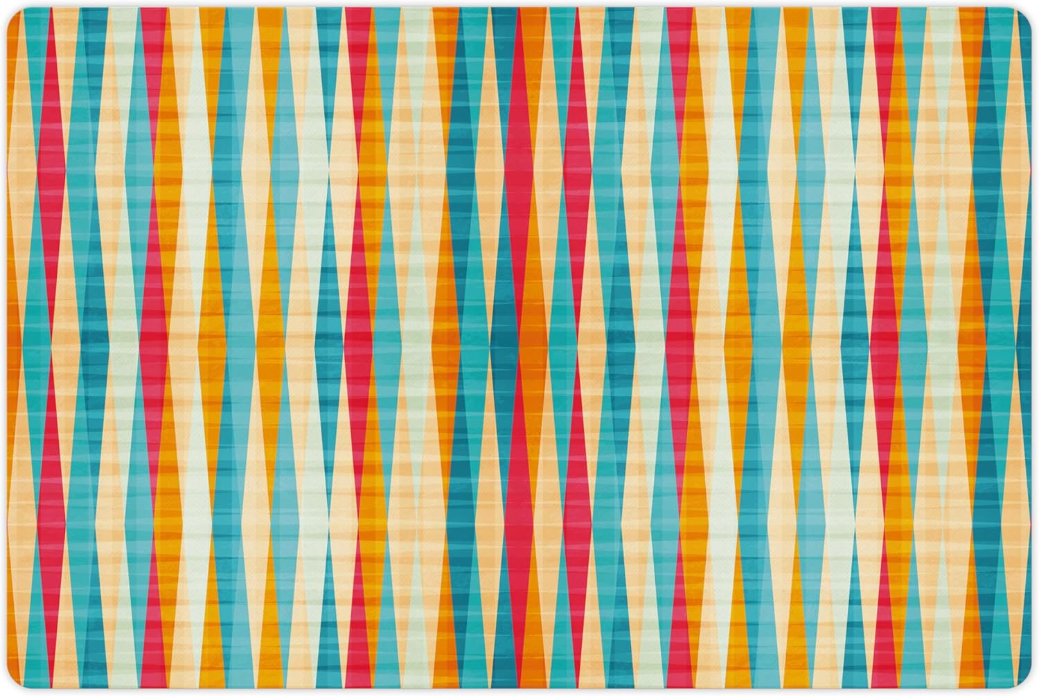 Lunarable Abstract Pet Mat for Food and Water, Colorful Formless Vertical Bands Contrast Tones Spectrum Design, Non-Slip Rubber Mat for Dogs and Cats, 18" X 12", Marigold Peach