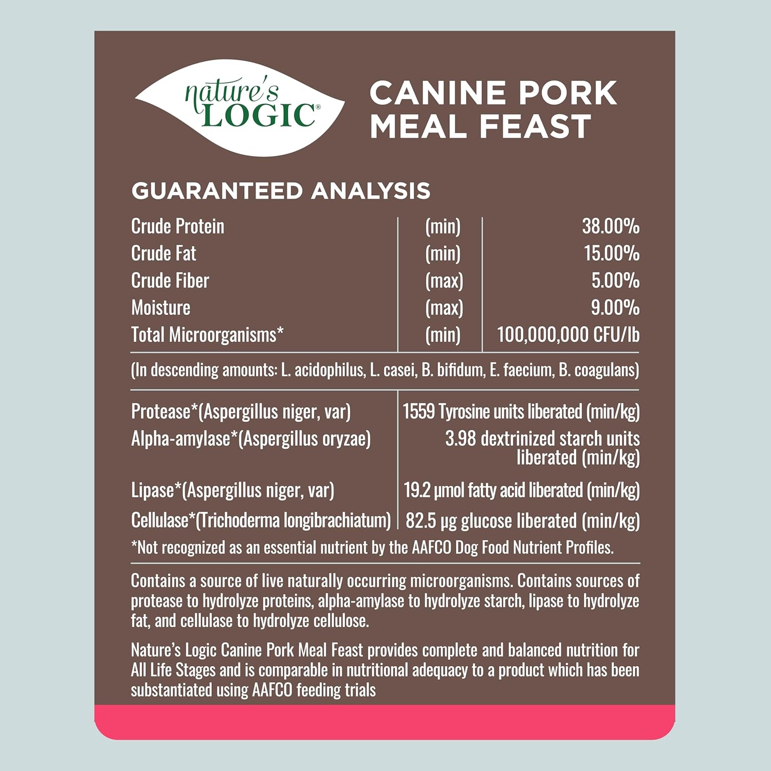 - HIGH PROTEIN FOR STRONG MUSCLES: Nature’s Logic Canine Pork Meal Feast provides 87% of its protein from high-quality meat sources, with pork meal as the main ingredient. This ensures your furry friend builds strong muscles, perfect for keeping them active and healthy throughout their life.