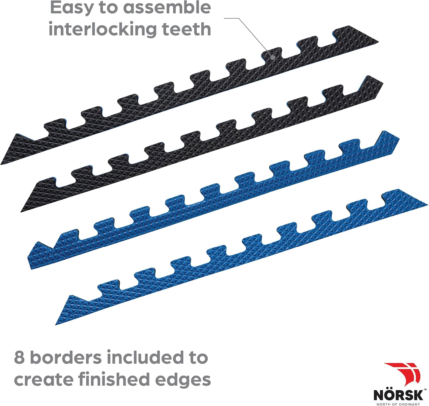 Norsk Reversible Gym Exercise Mats 3/4" Thick EVA Interlocking Foam Tiles, Perfect Home Gym Flooring, 32 Tiles & 64 Trim Pieces, 128 Sq. Ft. Reversible, Dazzling Blue/Black