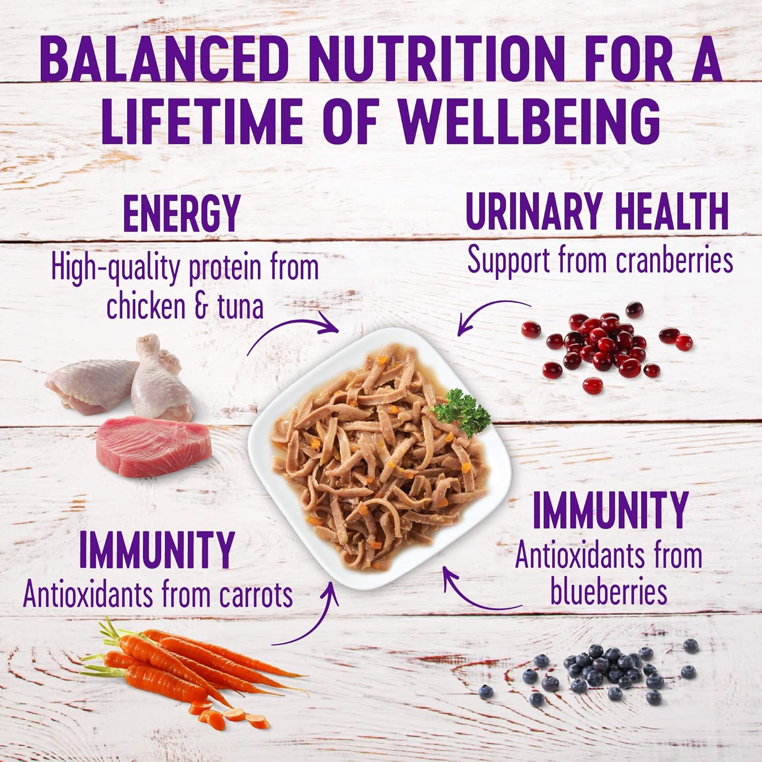 - COMPLETE & BALANCED NUTRITION: Wellness cat food is created by nutritionists & veterinarians to nourish and sustain your pet's wellbeing. Each recipe promotes the five signs of wellbeing: energy, lustrous skin and coat, sound digestion and immunity, strong teeth, and healthy eyes.
