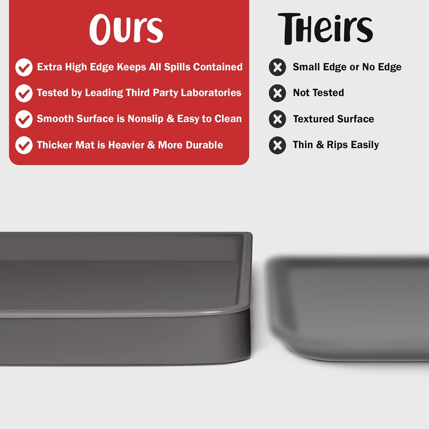 • Less Mess & Less Stress: Super high edge (0.6”) of DogBuddy Dog Food Mat keeps the spilled food and water on the mat and away from your beautiful floor. Silicone is naturally 100% waterproof, so what happens on the mat stays on the mat.