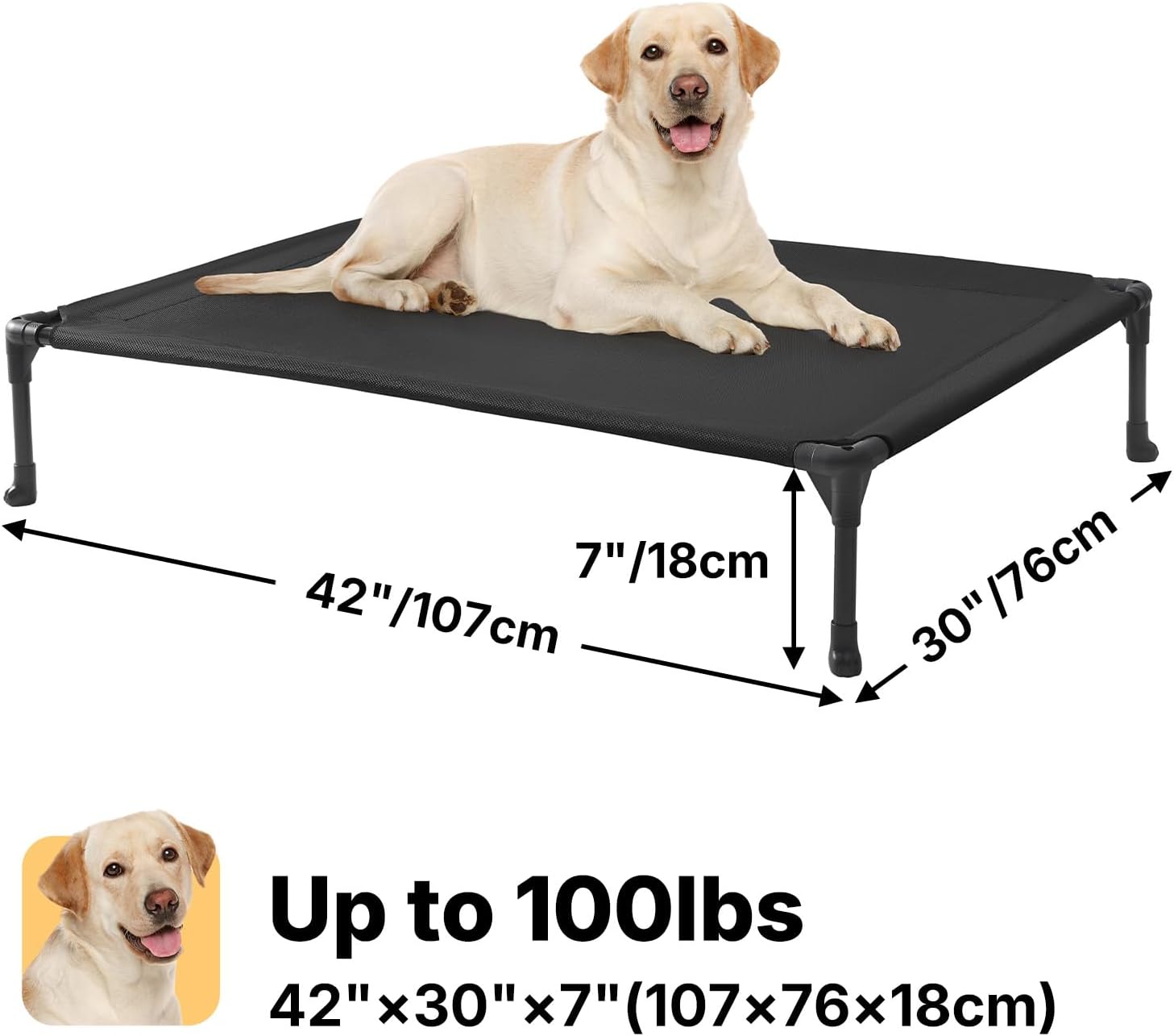 Veehoo Outdoor Elevated Dog Cot Bed, Cooling Raised Pet Bed for Large Dogs, Washable Breathable Mesh Hammock Bed with No-Slip Feet, Indestructible Ground Off Training Platform Cot-42"x30" Black