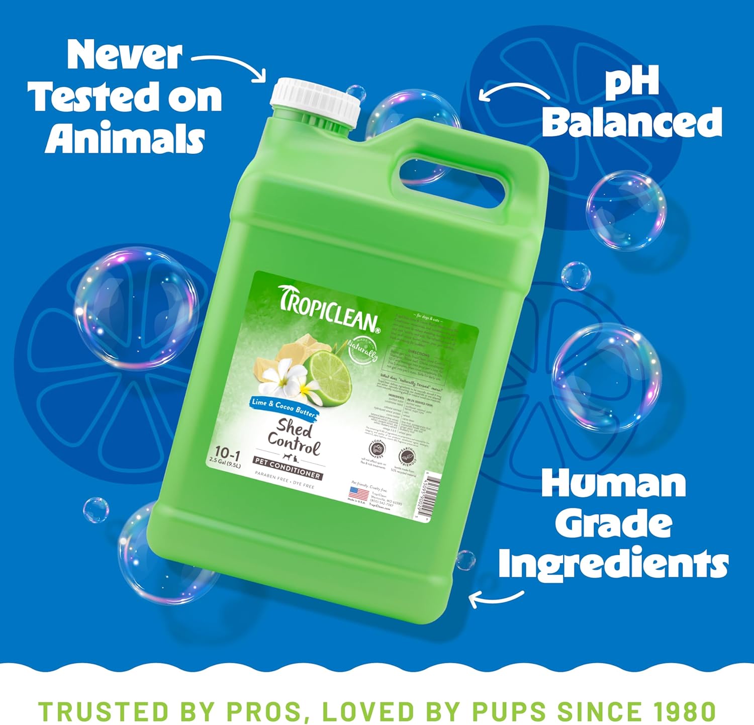 TropiClean Deshedding Dog Conditioner, Professional Conditioner, Reduces Shedding & Softens Coat, Puppy Safe, Lime & Cocoa Butter Scent, 2.5 Gallon