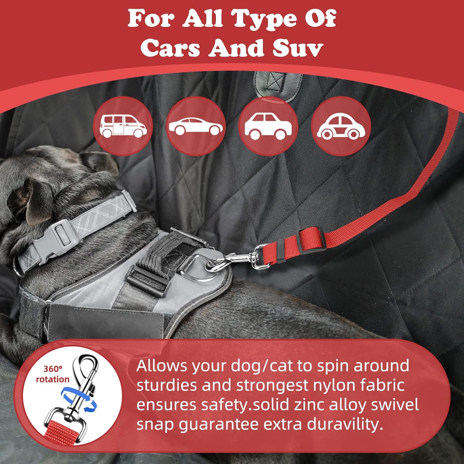 • HIGH QUALITY: Made of high quality nylon fabric to ensure safety, features the solid zinc alloy swivel snap and quality buckles, the pet car seat belt ensures the most safest traveling for your pet, and provides a most relaxing driving experience for you.