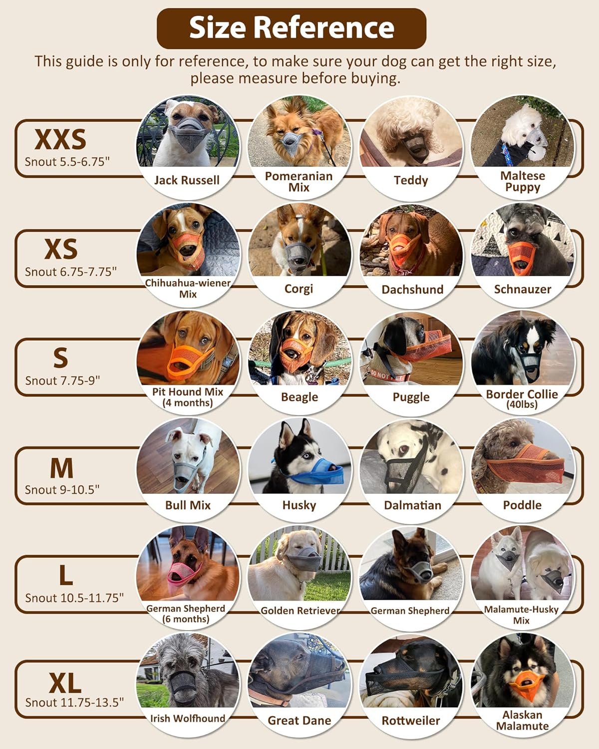 - Dog Muzzle for Large Dogs: The selected size is L, with snout circumference of 10.5'' to 11.75''. Suitable for Husky, Golden Retriever, Labrador, etc. Every dogโs snout is unique, please Measure Before Purchasing. Don't select a size based on breed or previous orders. If your dog's measurements are between two sizes, please choose the smaller size. (Note: Not for fierce dogs, overactive dogs, or short-snout dogs.)