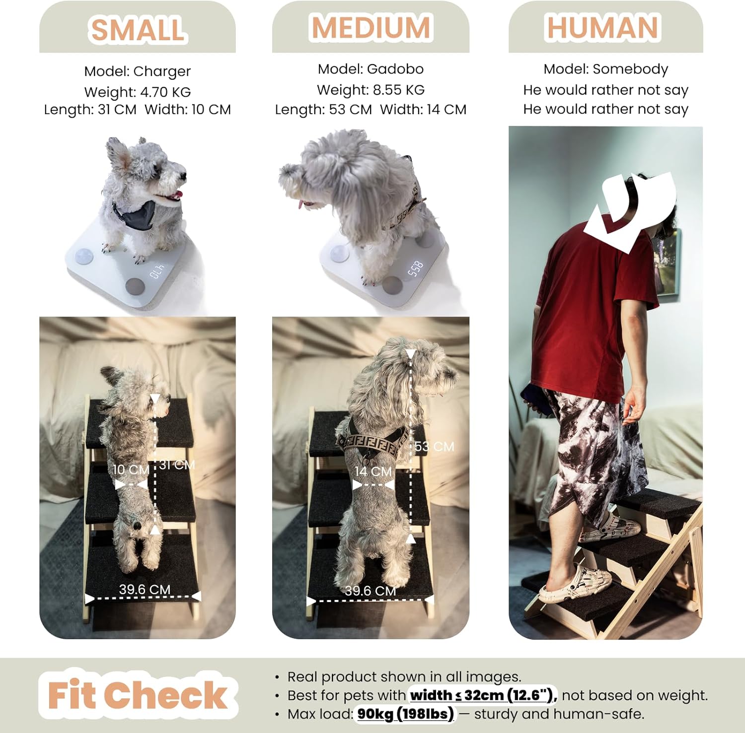MEWANG Wood Pet Stairs & Ramp for Small/Medium Dogs and Cats, Aging Pets – 3-in-1 Foldable, Portable, Non-Slip Pet Ladder for Tall Beds, Couches,Cars–Holds Up to 220 lbs (24.8" L x 17.2" W x 19.5" H)