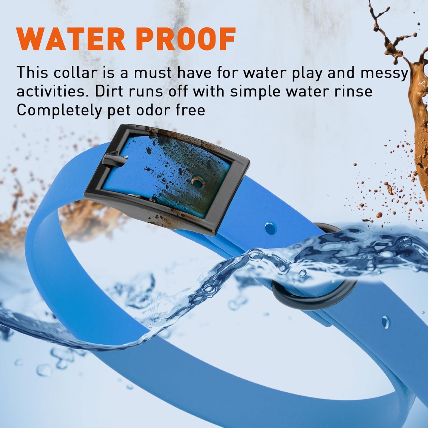 - Free Your Dog to romp in puddles and retrieve from lakes with the Dogline Biothane Waterproof Dog Collar. This water-repellent collar stays dry and odor-free, without shrinking or losing flexibility.
