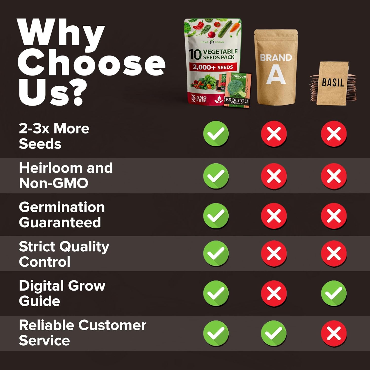 - Worry Free Gardening - Our seeds are consistently tested at or above 95% germination rates under optimal growing conditions. You wont need to worry about duds and seeds not germinating. Along with our high germination rate we include our Homegrown Garden Growing Guide that includes tips and best practices to help you on your gardening journey.
