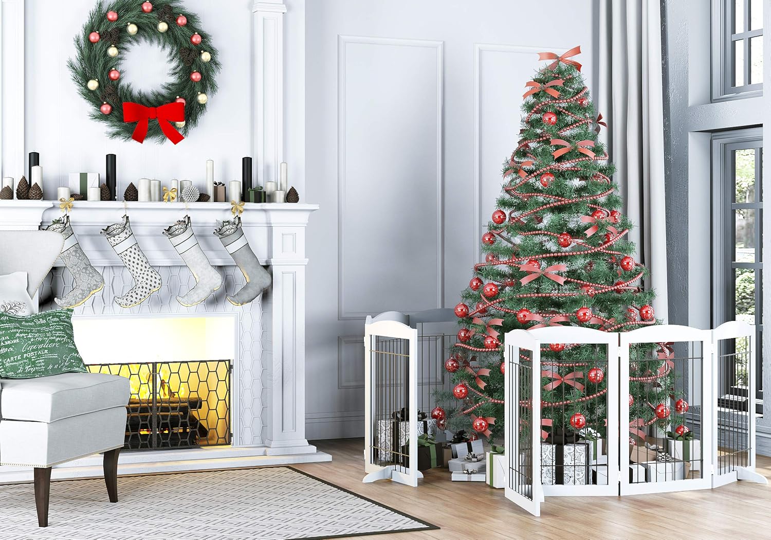 - EASY TO SET UP & STORE: The Dog Gate Quickly Unfolds Like an Accordion, Making It Simple to Set Up and Store. Consists of 4 pet panels, connected and secured together with sturdy 360 degree hinges for multiple configurations.