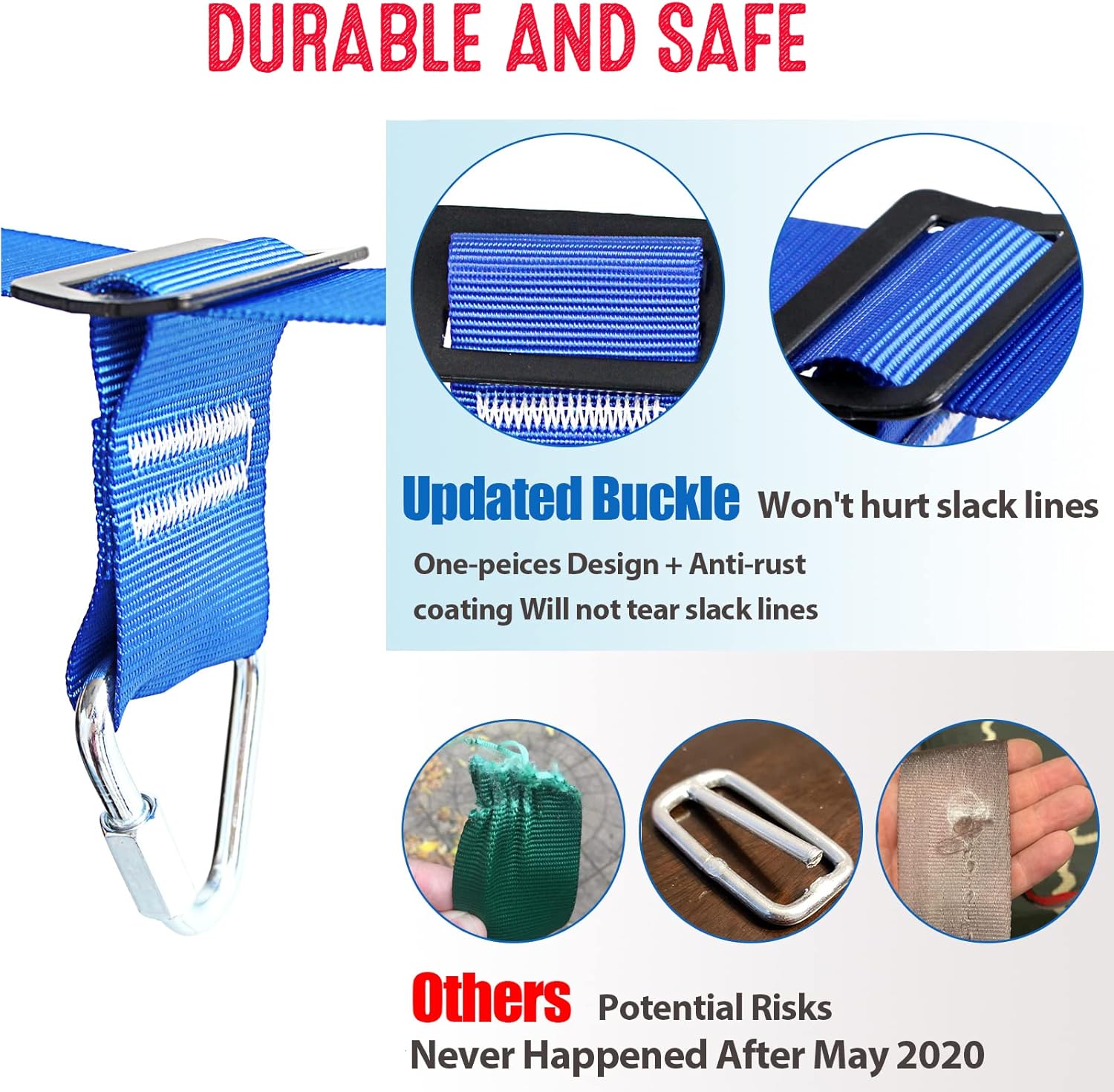• TOP QUALITY & SAFETY - High quality PE material and High-strength anti-rust treated steel components will last for years. Each Ninja Warrior accessory is tested for a 600 LBS WEIGHT CAPACITY. We upgraded the "ONE-PIECE" and coated design buckle and solved the problem of slack line tearing.
