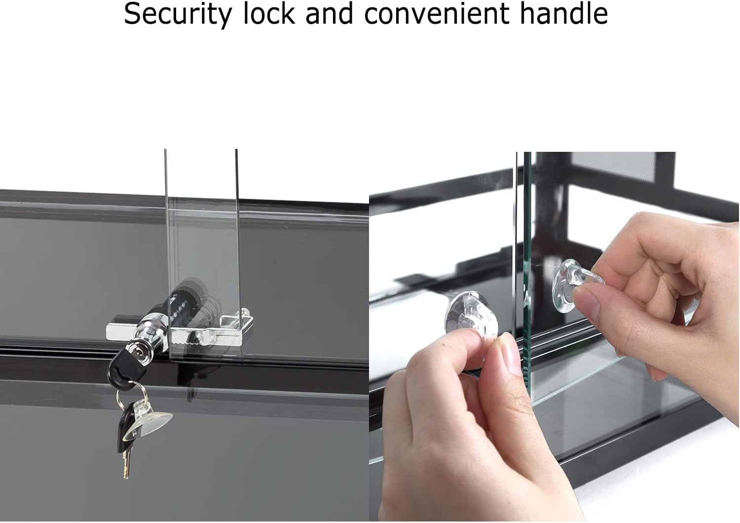 - ăANTI-ESCAPEăSecurity buckle on the lid ensure the tank closed tightly, prevent your reptile amphibian chameleon pets from escaping. And the security lock avoid the doors open accidently by your kids and keep your kids safe.