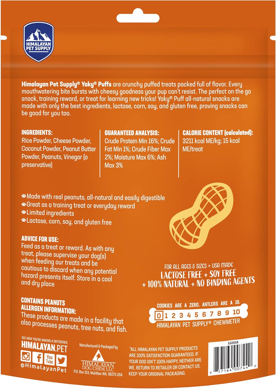 | yakyPUFF Himalayan Cheese Treats | Lactose Free | Gluten Free | Grain Free | USA MADE | For All Breeds | Peanut Butter Flavor Crispy Puffed Treat