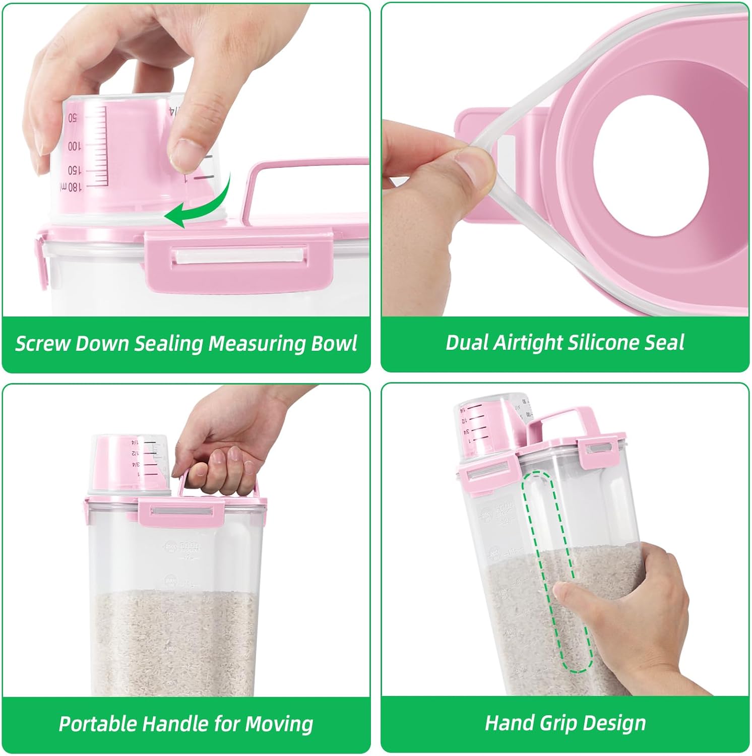 - MESS-FREE RICE DISPENSER: The cereal storage container features a pouring spout makes it a breeze to dispense your ingredients. Its ergonomic design offers a comfortable grip for easy, single-handed pouring