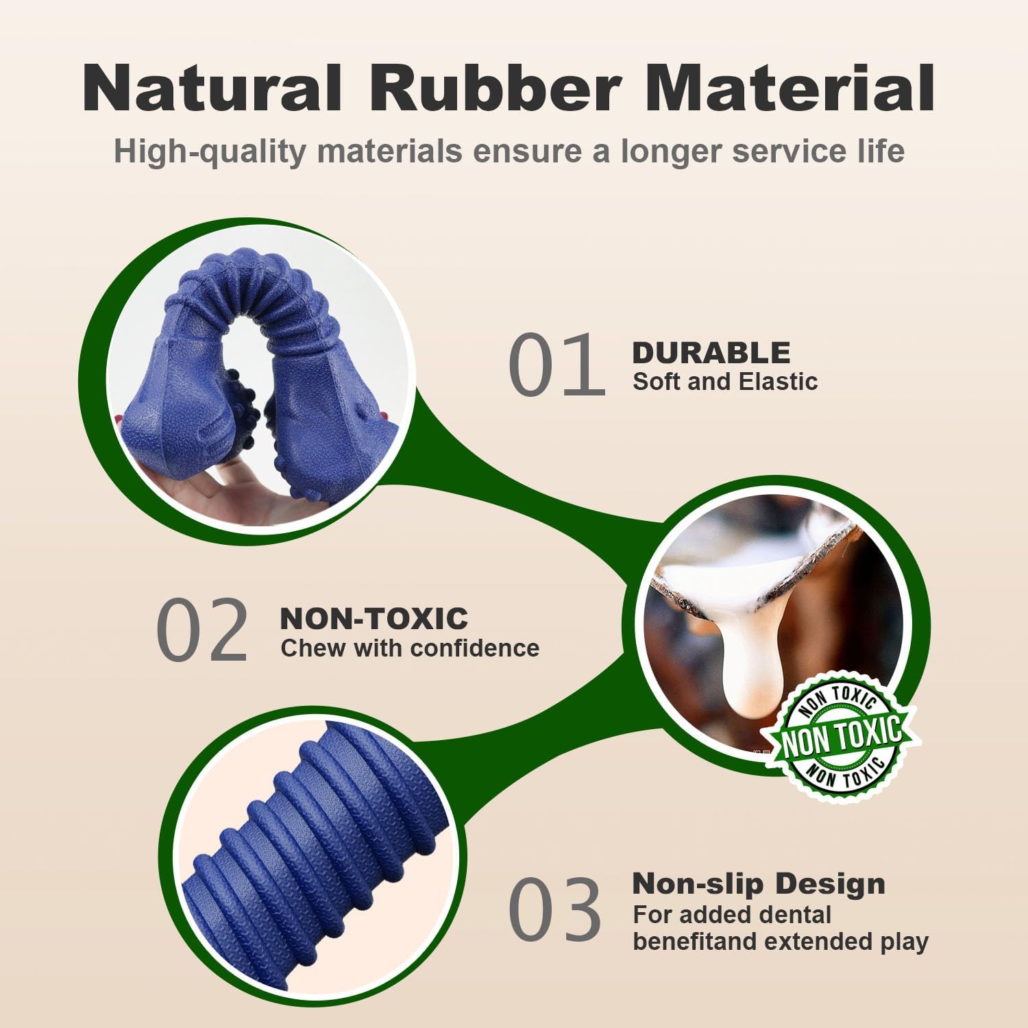 - Extreme Durability – Natural Rubber Dog Chew Toy Built for power chewers, this tough dog toy is made of high-quality, non-toxic natural rubber in a durable one-piece design. It’s ideal for daily chewing sessions, especially for large breed dogs that love rubber bones for dogs. With no sharp edges or glued parts, it minimizes potential hazards compared to low-quality chew toys. Great for pets needing dog toys for aggressive chewers or looking for rubber dog bones for aggressive chewers that help satisfy their natural chewing instincts.