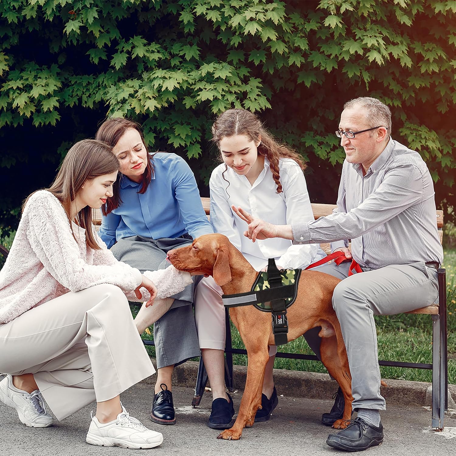 Dogline Dog Harness, Reflective No-Pull Adjustable Vest with Handle for Walking, Training, Breathable, No - Choke Harness for Small, Medium or Large Dogs Room for Patches Girth 22"-28" in Green Camo