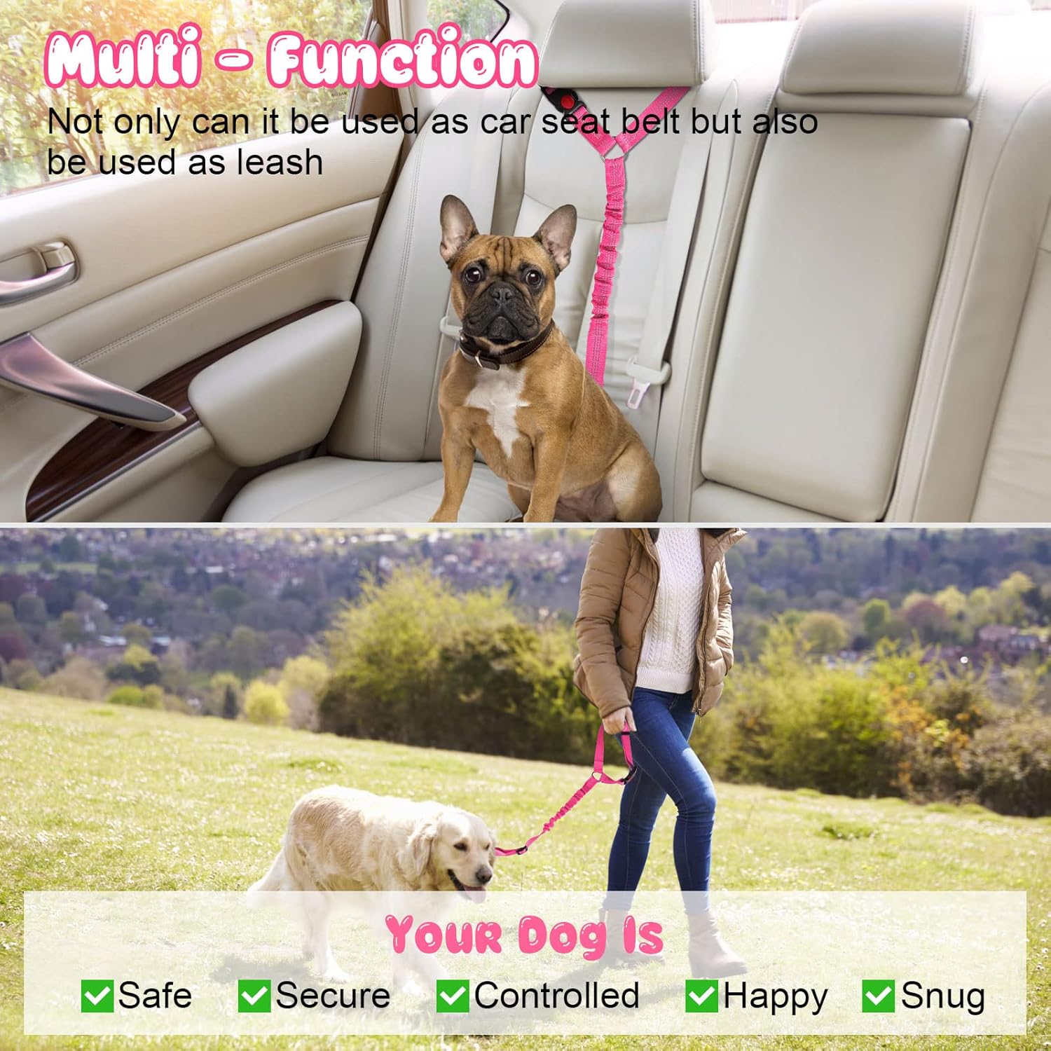 - PRACTICABILITY: Our durable leash Not only can use for car ,but also can be converted to a traditional hand-held leash whenever you need. In addition,It is easy to have the pets secured to a tree or other strong post to keep pets safe when you need.