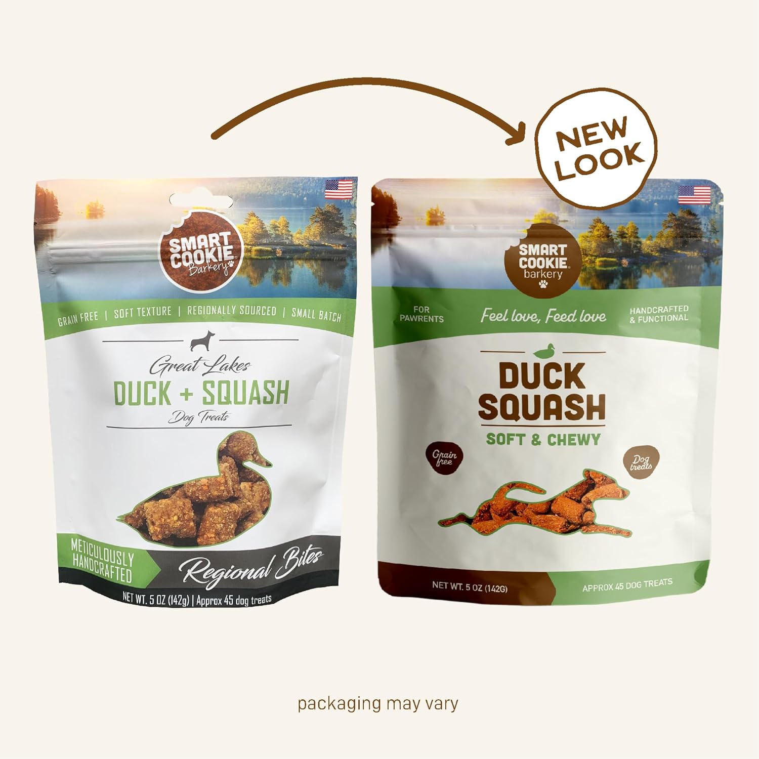 Smart Cookie All Natural Soft Dog Treats - Duck & Squash - Training Treats for Dogs with Allergies or Sensitive Stomachs - Grain Free Dog Treats, Chewy, Human-Grade, Made in USA - 5oz Bag