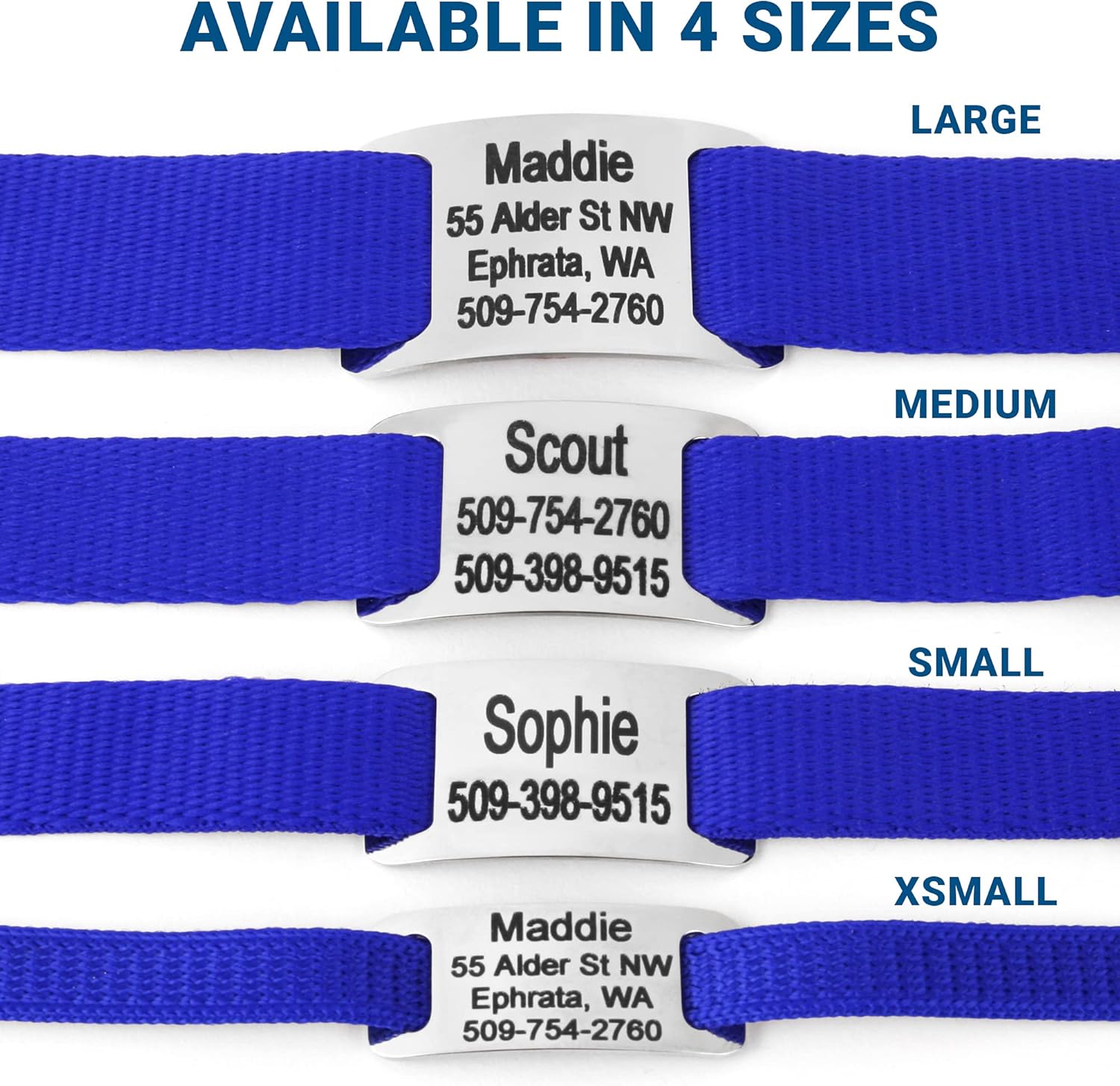 GoTags Personalized Dog Collar with Nameplate, Adjustable Dog Collar with Custom Engraved Slide On Pet ID Tag in Stainless Steel, Silent, No Noise Dog Tag for Large Medium and Small (Blue, Large)