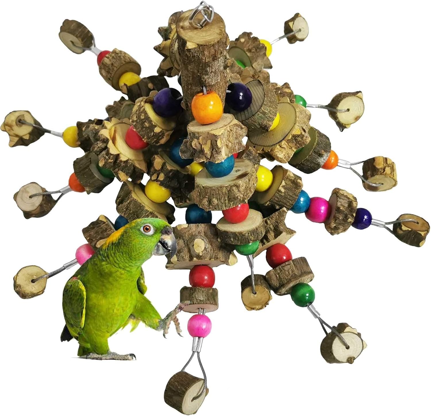 • βœ… Safe & Natural Materials: Made of 100% untreated natural wood blocks (prickly ash wood), non-toxic and bird-safe. Perfect for satisfying parrots' instinctive chewing needs while protecting their beaks.