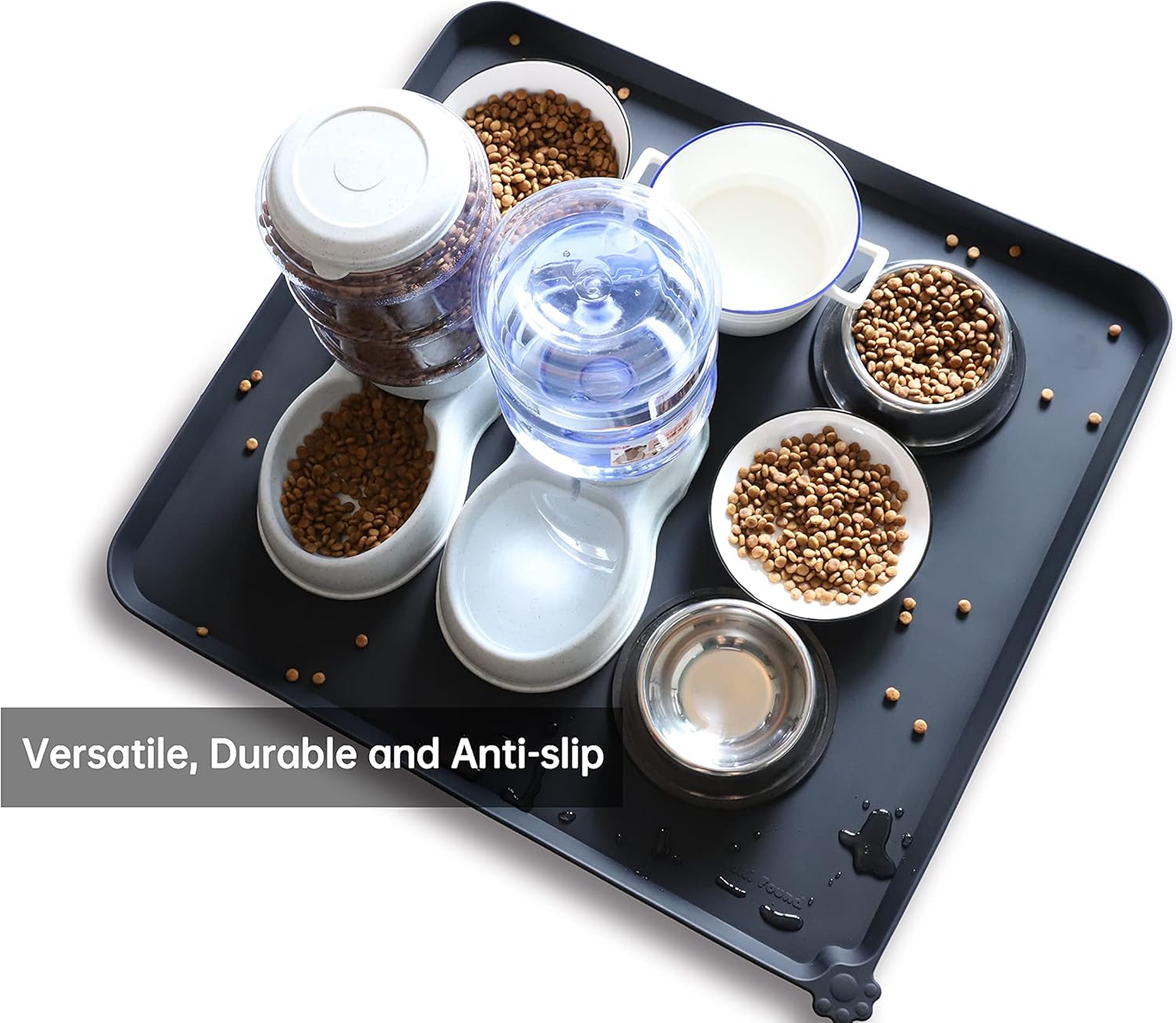 Hoki Found XX-Large Silicone Pet Food Mats - Non-Slip Dog & Cat Feeding Mats - Waterproof for Carpet - Black