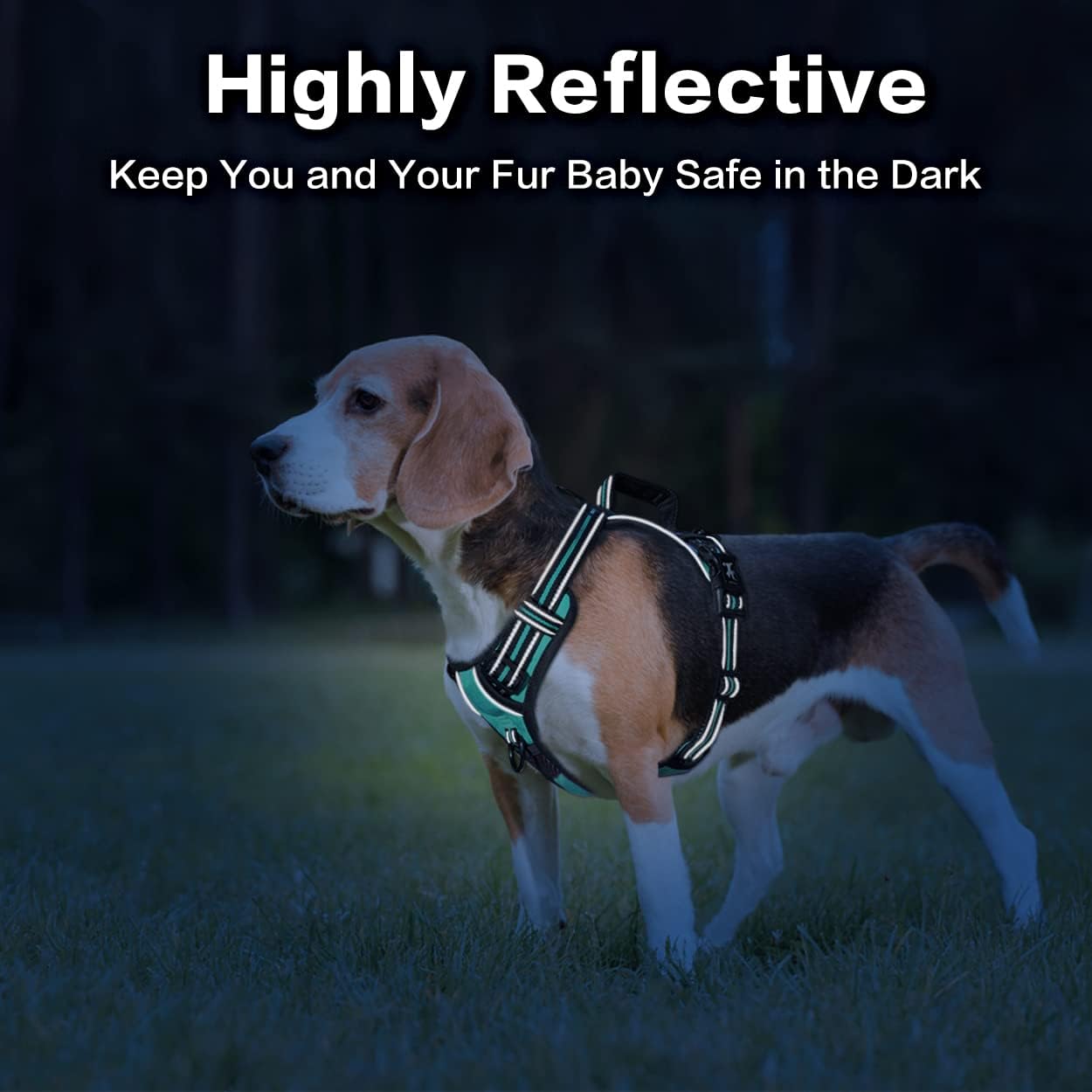 PoyPet No Pull Dog Harness, No Choke Front Clip Reflective Dog Vest with Soft Padded Vertical Handle, 3 Leash Attachments for Small Medium Large Dogs (Mint Blue,XL)