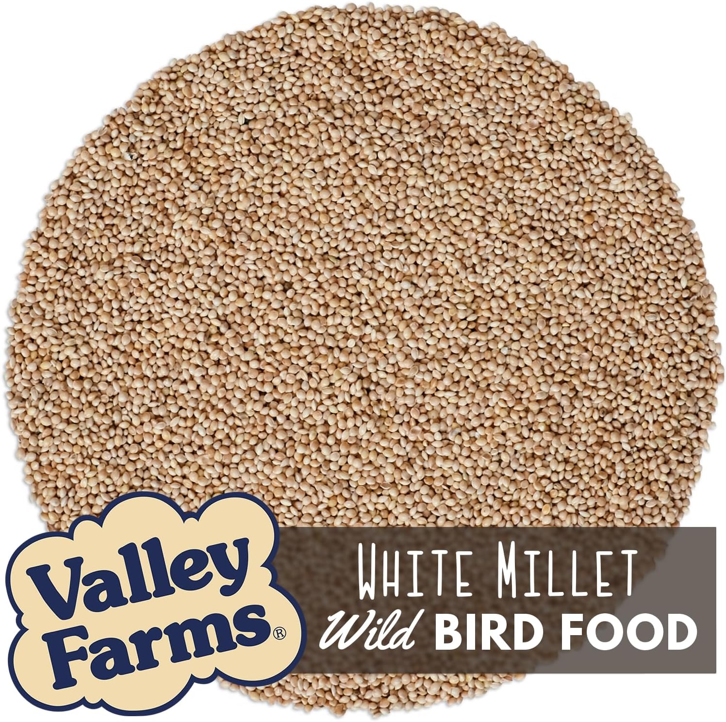 • 🧹White millet makes very little mess. The husks are thin and easily blow away in the wind. Valley Farms white millet is vacuumed cleaned and always fresh.