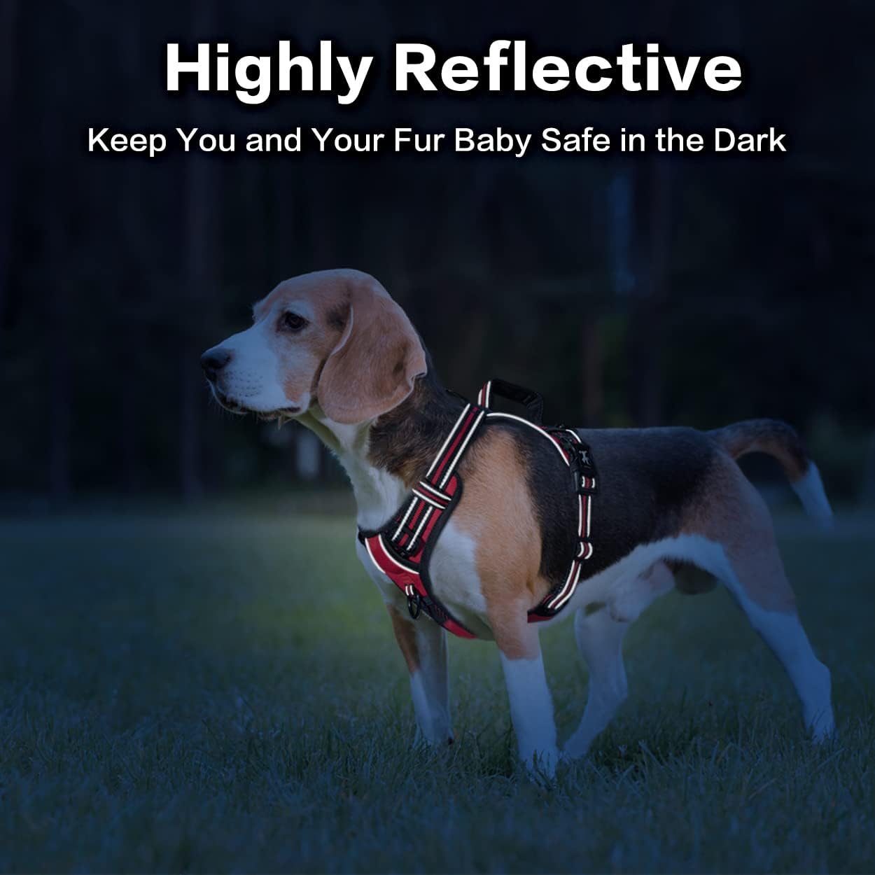 PoyPet No Pull Dog Harness, No Choke Front Clip Reflective Dog Vest with Soft Padded Vertical Handle, 3 Leash Attachments for Small Medium Large Dogs (Red,XL)
