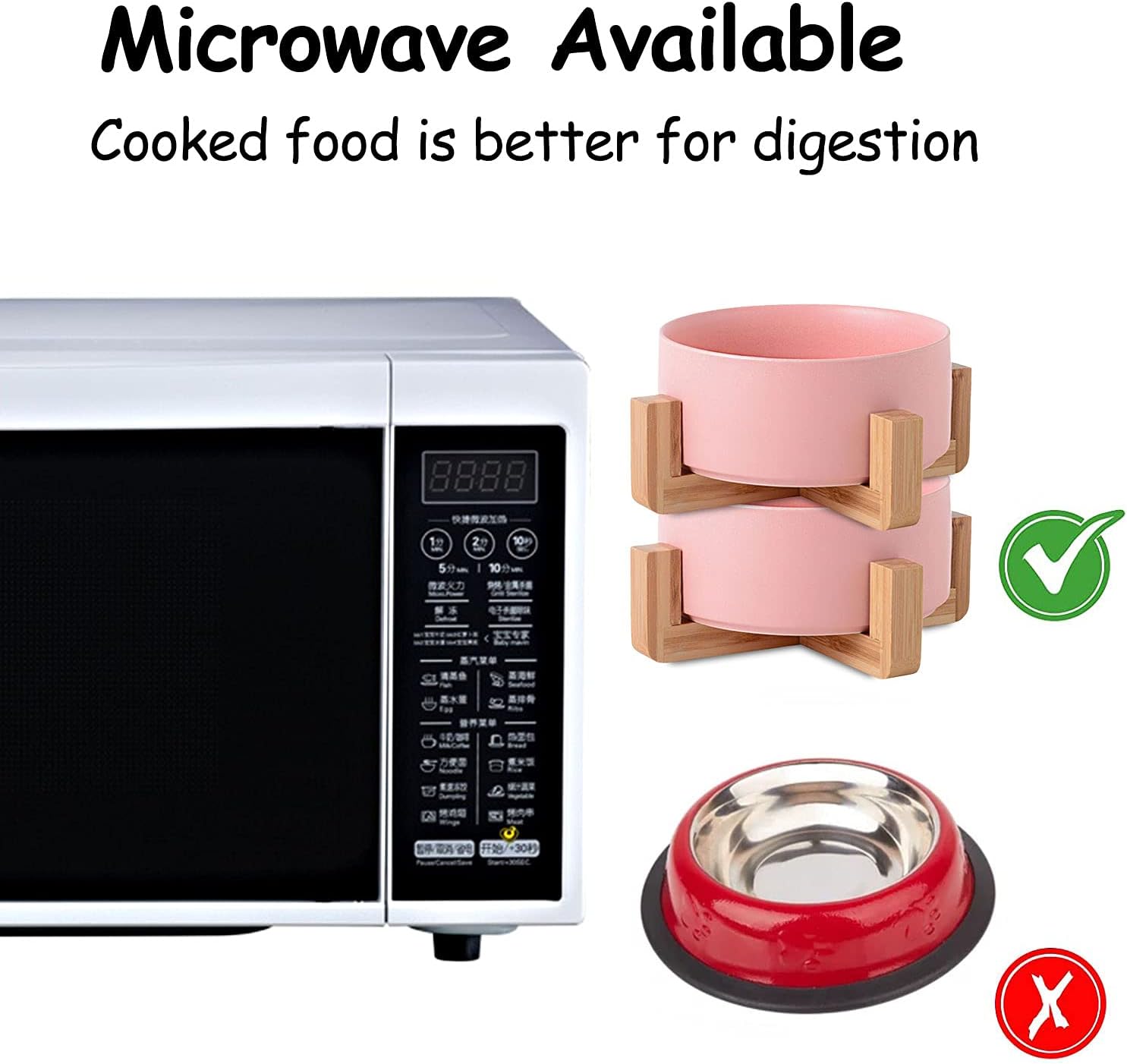 - DISHWASHER MICROWAVE SAFE - Ceramic pet bowls is made of Porcelain Ceramic with wood frame to keep from sliding on the floor. Ceramic cat dog bowls are high temperature ceramic, non-toxic durable. and the cat dog food water bowls conveniently dishwasherable so it can be easily cleaned. No Fuss.