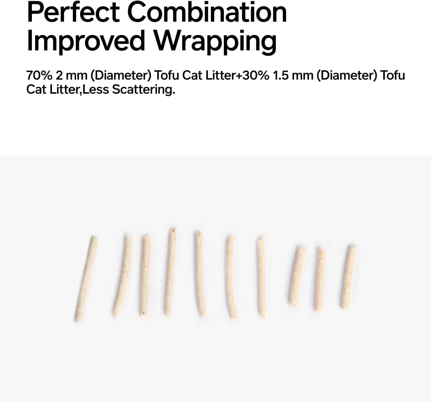 - 【Less Scattering, Improved Wrapping】70% 2 mm (Diameter) Tofu Cat Litter+30% 1.5 mm (Diameter) Tofu Cat Litter。Perfect Combination, Less Scattering, Improved Wrapping.