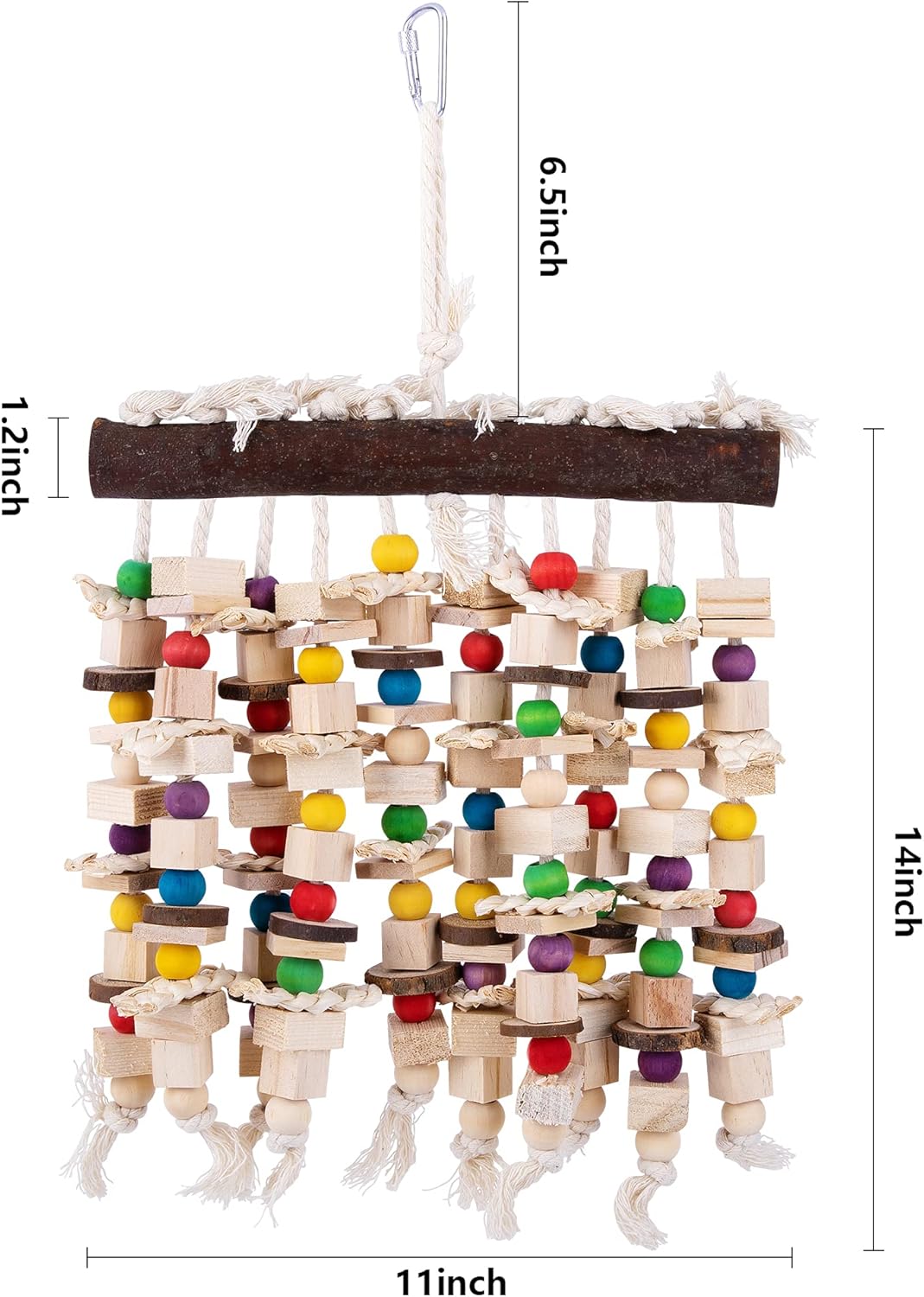 - Unique design: This big parrot toys has several distinctive shapes blocks and multicolor wooden beads with vibrant colors which connected with the metal chain,and also multiple layers encourage parrot to climb and explore.