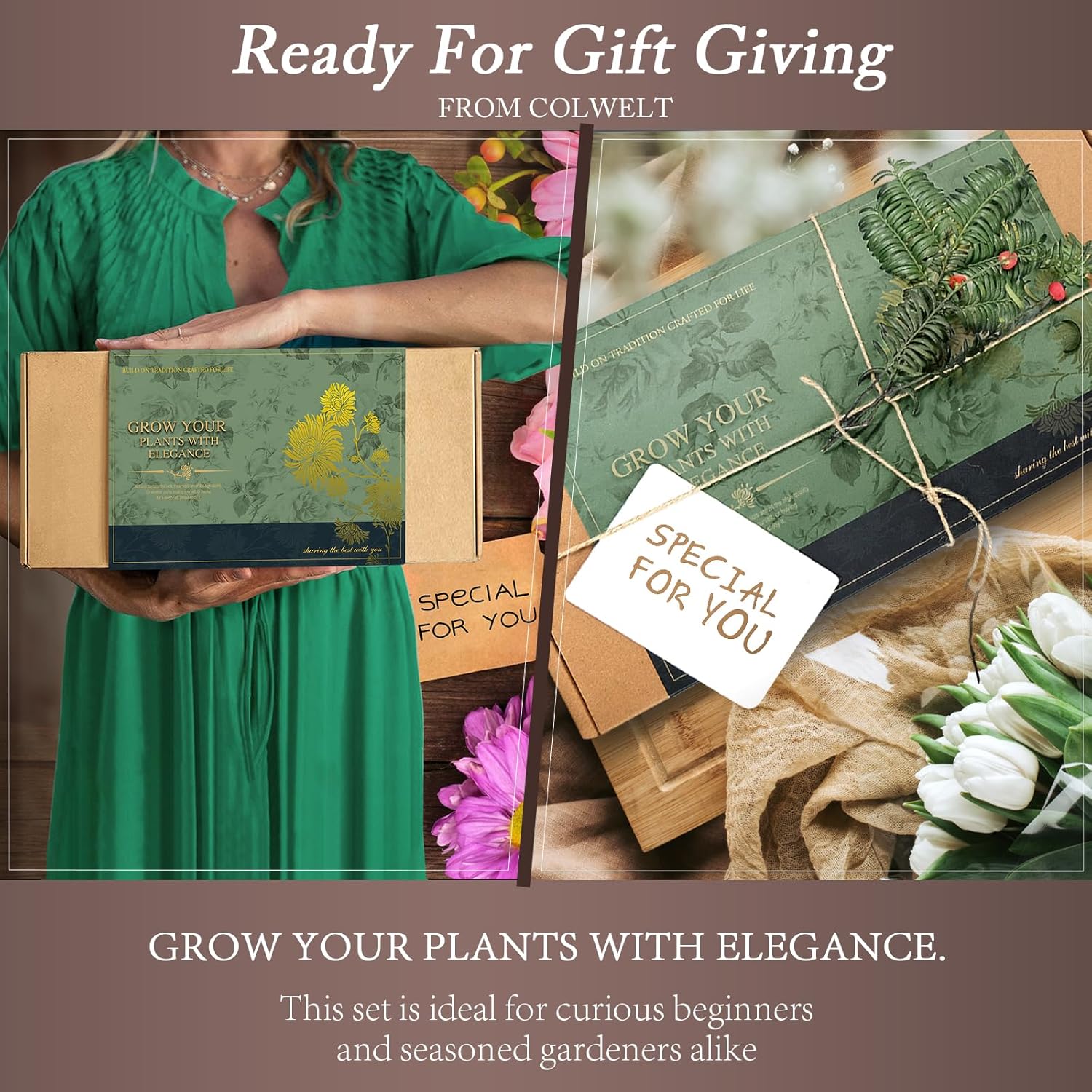 Colwelt Garden Tools Set, 8 Piece, Heavy Duty Gardening Tools with Wooden Handle, Including Garden Tote, Kneeling Pad, Gloves, Pruner, Trowel, Tulip Trowel, Cultivator - Gardening Gifts for Women Men