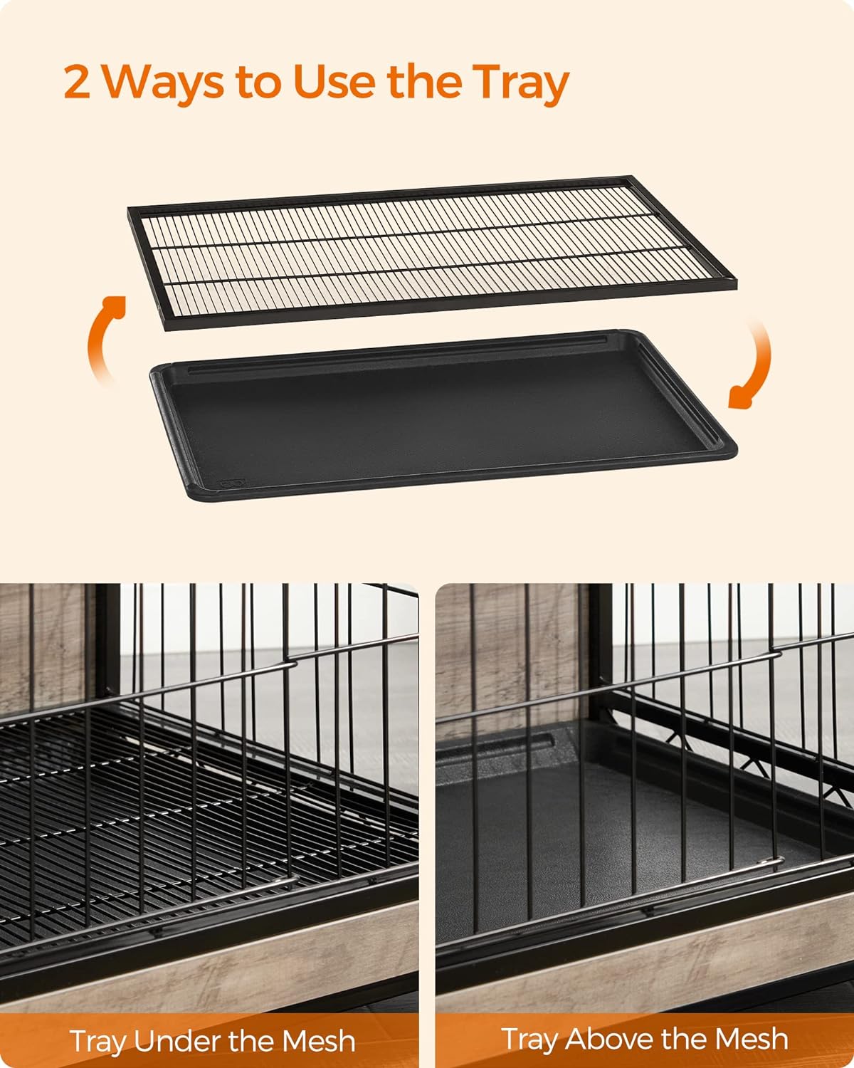 - [2 Ways to Use the Tray] Put the tray under the bottom mesh to catch crumbs, fur, and dirt, keeping your dog's place clean without dirtying your floor, or place the tray above the mesh to offer your dog a flat, comfortable surface—it's up to you