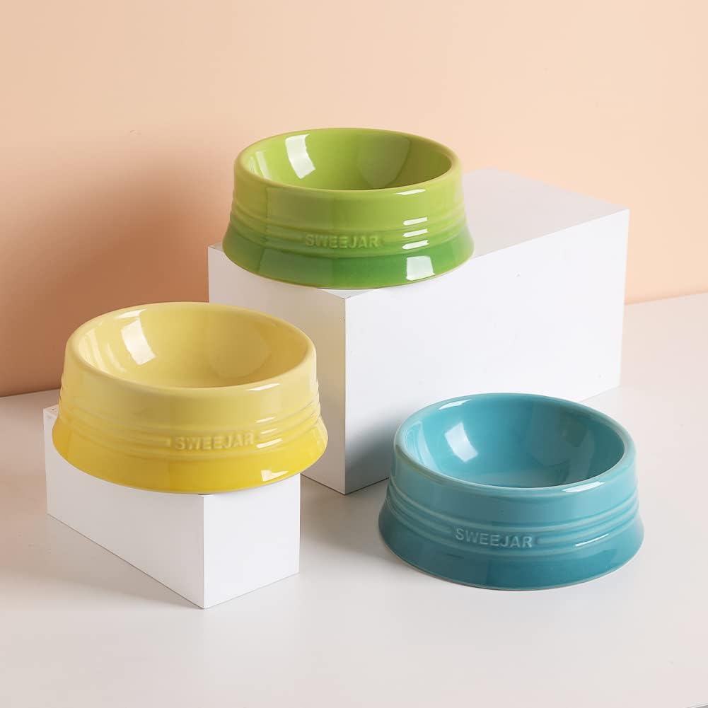 - Non Skidding - SWEEJAR dog bowls are made of food grade porcelain, microwave & dishwasher safe, easy to clean. The ceramic is heavy to help keep the bowl upright when dog eat food. No messy floors to clean.