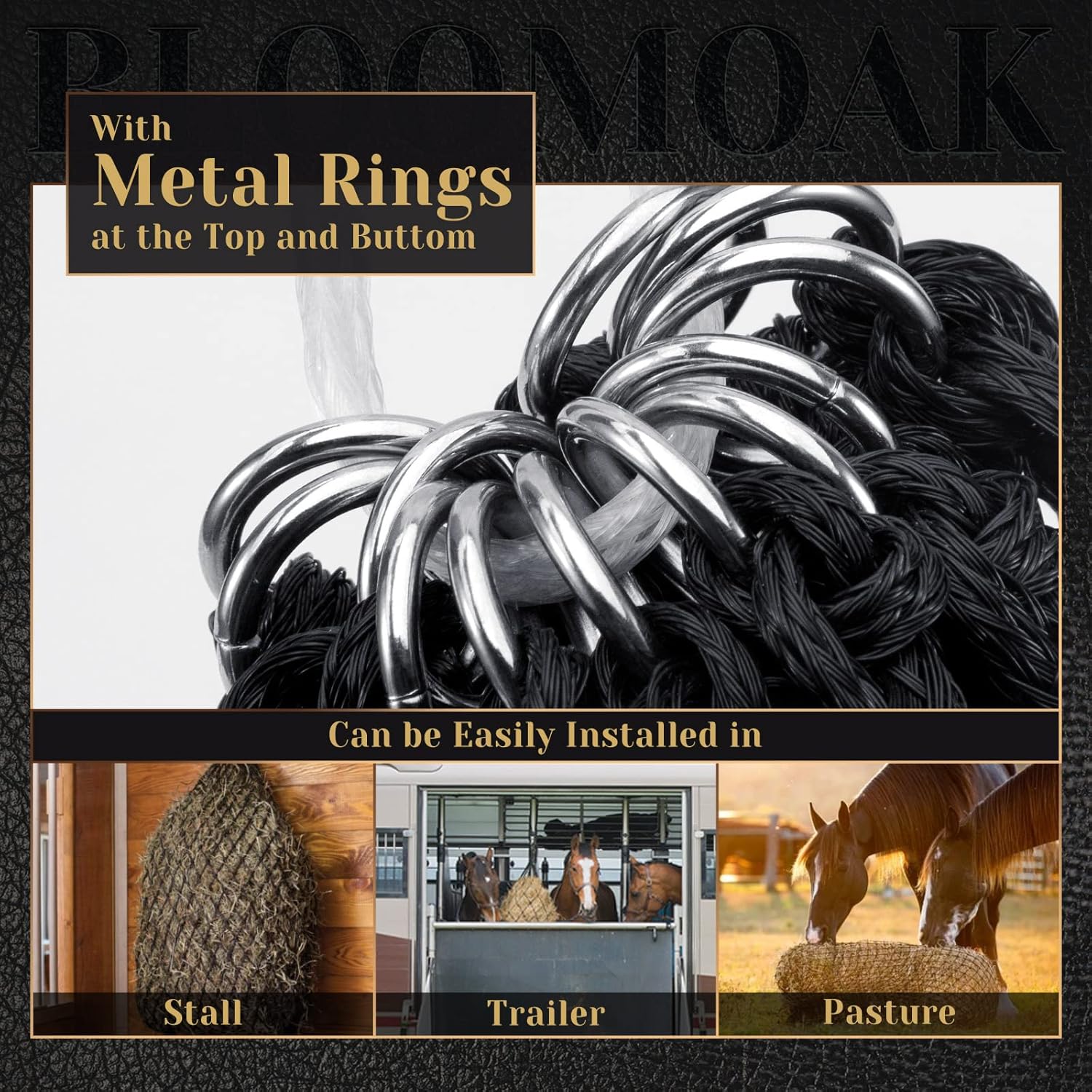 - 🐴【Beneficial to the Horse's Digestion】With a small 1.6-inch mesh, the horse passes through the hay for a longer time. This effectively reduces the risk of gastric ulcers, reduces digestive discomfort, and prevents overfeeding in the time between feeds.