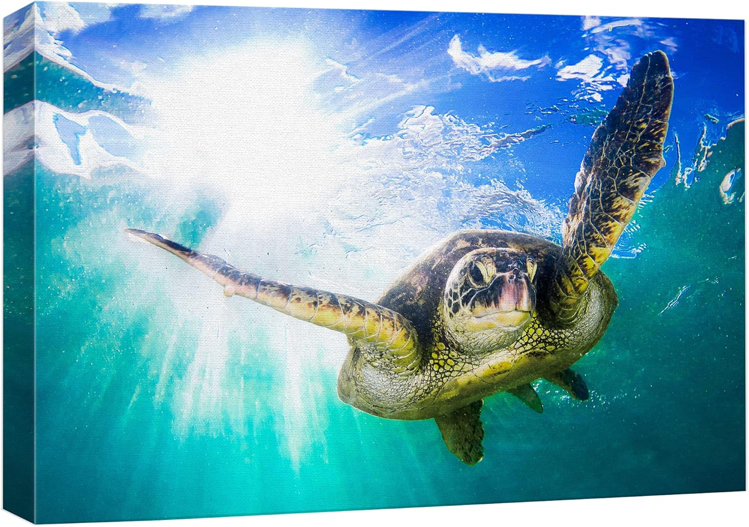 wall26 Canvas Print Wall Art Sunlight Tropical Ocean Underwater Turtle Nature Animals Photography Realism Rustic Scenic Landscape Wilderness Earth Colorful for Living Room, Bedroom, Office - 12"x18"