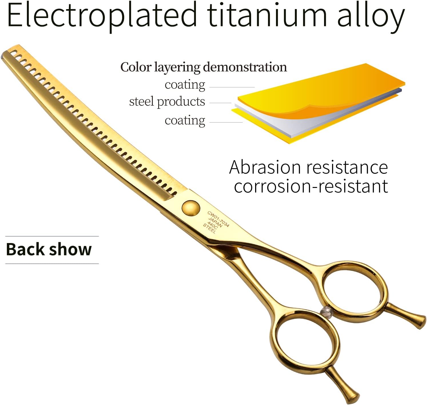 - ✂️440C Steel & Ultra Quality - The steel quality and the fine craftsmanship it is executed are the main factors defining the hardness, sharpness, and sharpness resistance, but also the shiny and professional look of the chunker scissors. Therefore, the dog grooming scissors are made of the highest quality 440C stainless steel, containing the best quality pure metals, with the greatest resistance, hardness, and wear resistance from all the stainless alloys.