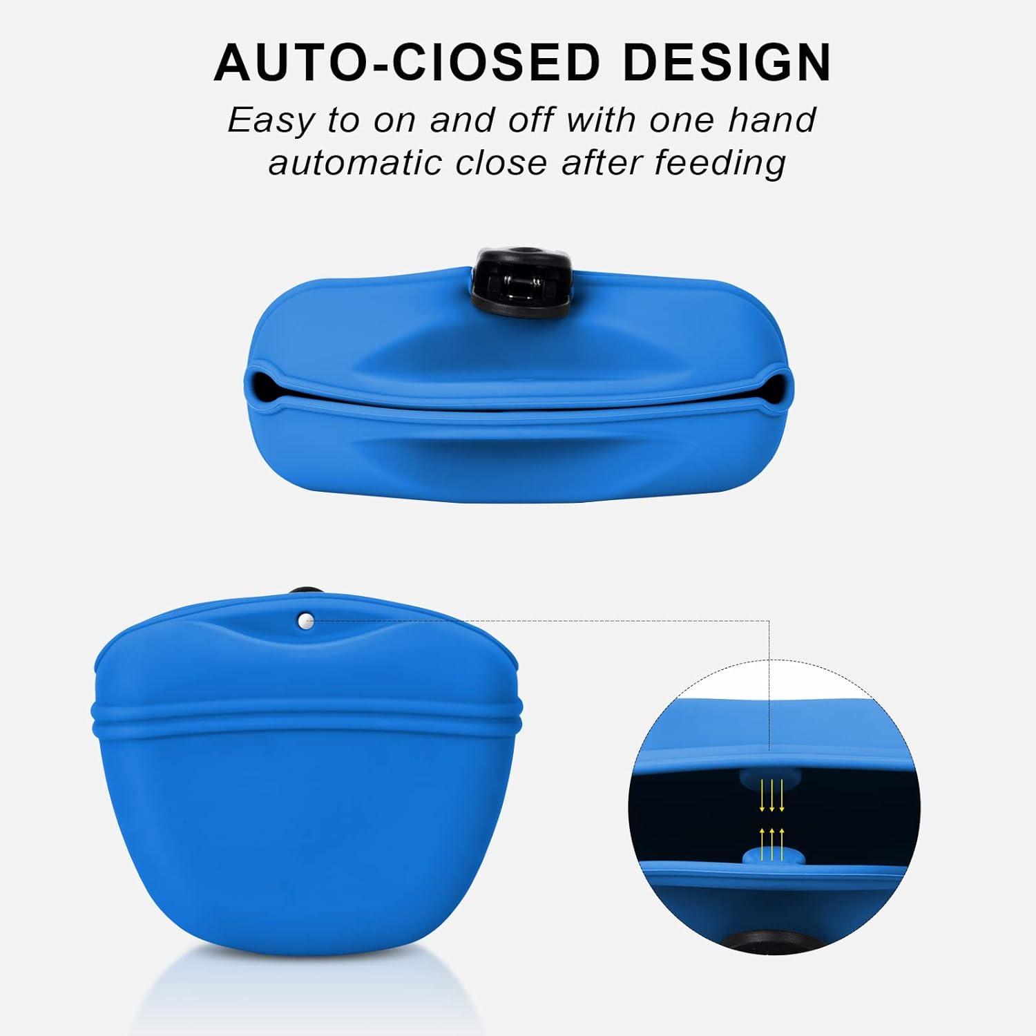 • 🐕Silicone Dog Treat Pouch🐕 - The silicone dog treat pouch is made of food grade silicone,it can contact dry and wet food directly,safe and healthy. It’s easy to on and off with one hand, automatic close after feeding.With upgrated clip,It is easy to carry,not easy to fall off.Dish washer safe and easy to clean,The large opening design and soft silicone material make the pet pouch easy to reverse to clean the inner easily and thoroughly.