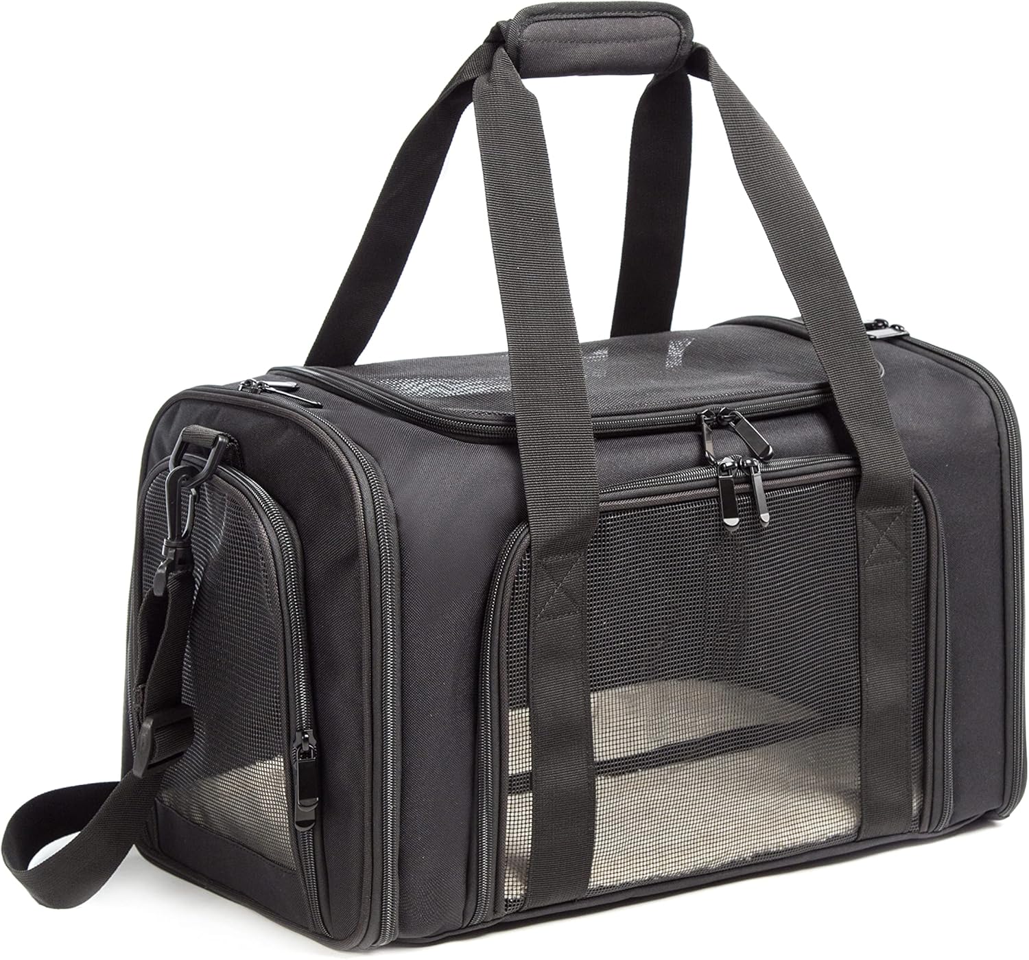 - DURABLE - This cat carrier is made of durable and lightweight polyester fabric. The four-side mesh will not only give a safe and comfortable travel for your pet, but also easy for you to check on your pet