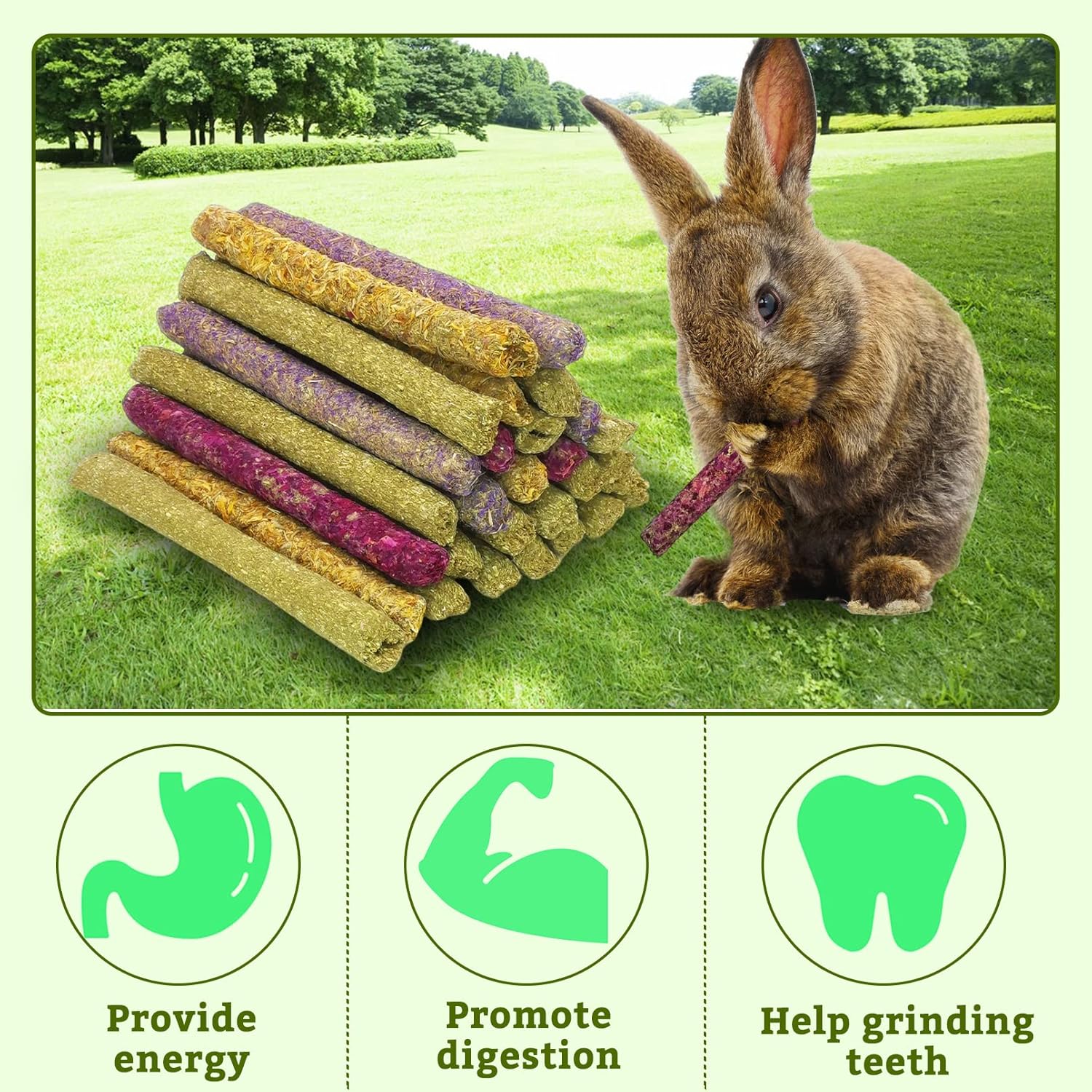 - š° [Interaction & Teeth Grinding]: Timothy hay sticks are suitable for hand feeding, making your relationship with your pet more intimate during interactions with your pet, and can also relieves overgrowth of rodent teeth, anxiety and boredom.